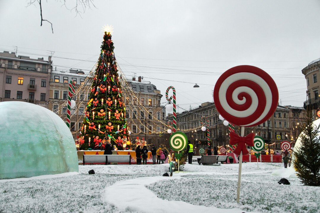 Там установили елку, сказочные домики, волшебные карусели и даже настоящую царскую карету. А на Конюшенной открылся новогодний каток.