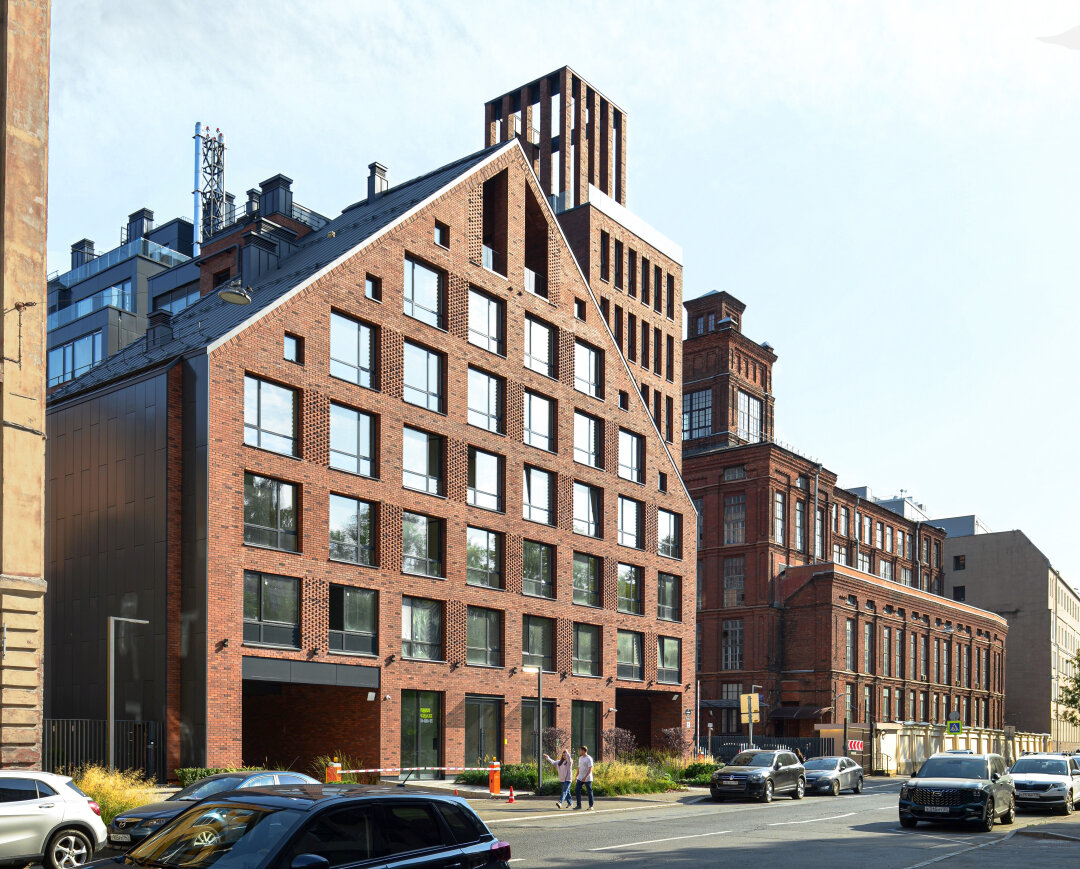 Жилой комплекс возвели на территории бывшей Тюлевой фабрики XIX века на Петроградской стороне. Рядом расположено здание бывшей бумагопрядильной мануфактуры купца Джеймса Бэка, построенное в начале XX века по проекту Юлия Бенуа и Фердинанда Миллера. Постройки не конфликтуют, а вступают в диалог. «Проект основан по принципу идеальной геометрии и вдохновлен строгими архитектурными формами, четкими ритмами и математической точностью — от количества кирпичей в каждом простенке до размеров окна», — отмечает партнер «Студии 44, архитектор Антон Яр-Скрябин.
