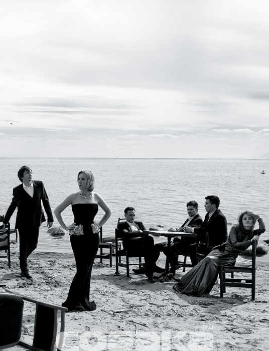 На Анастасии: платье Alexander Mcqueen, колье Alexis Bittar (ДЛТ). На Вячеславе: костюм Dolce & Gabbana (ДЛТ). На Сергее: костюм Dolce & Gabbana (ДЛТ). На Александре: костюм Uomo Collezioni (Uomo Collezioni). На Алексее: костюм Canalli (Mens Boutique №1). На Диане: платье Von Vonni (ДЛТ)