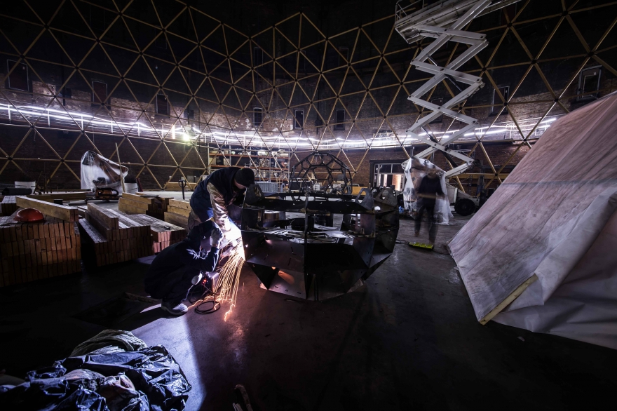 Самый большой в мире планетарий заработает в бывшем газгольдере на набережной Обводного канала с 4 ноября. Мы провели три часа с автором проекта и основателем креативного пространства «Люмьер-холл» Евгением Гудовым посреди роботов-сборщиков и электросварки, чтобы убедиться: он это всерьез.