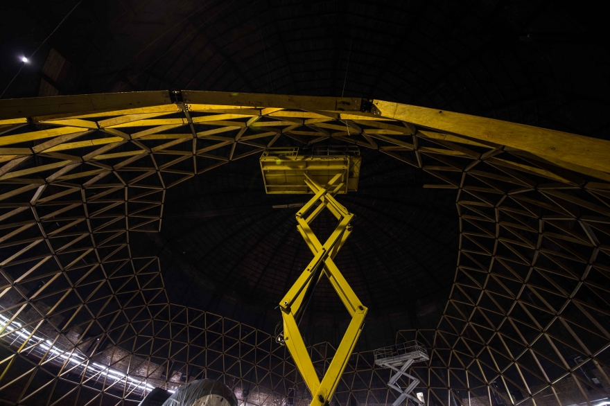 «А хотите, я вас развлеку? Если присесть на корточки в точке по центру планетария, все выгнутые ряды каркасов покажутся прямыми!» — Евгений несется между столбами строительной пыли и показывает свои владения, постоянно переключаясь на занимательные факты, как говаривал доктор Шелдон Купер в «Теории большого взрыва». Вот купол: каждый день он прирастает одним-двумя уровнями, потому что работы идут в три смены. Вот роботы режут панели, на которые проекционная система по принципу многопоточного сервера будет транслировать видео с разрешением до 16 000 пикселей (в Японии осилили только 8000). Вот орбитальная боевая станция «Звезда смерти» из вселенной «Звездных войн» практически в натуральную величину, вот макет станции «Союз», а вот видео галактики со структурой губки — свежая космическая новость!