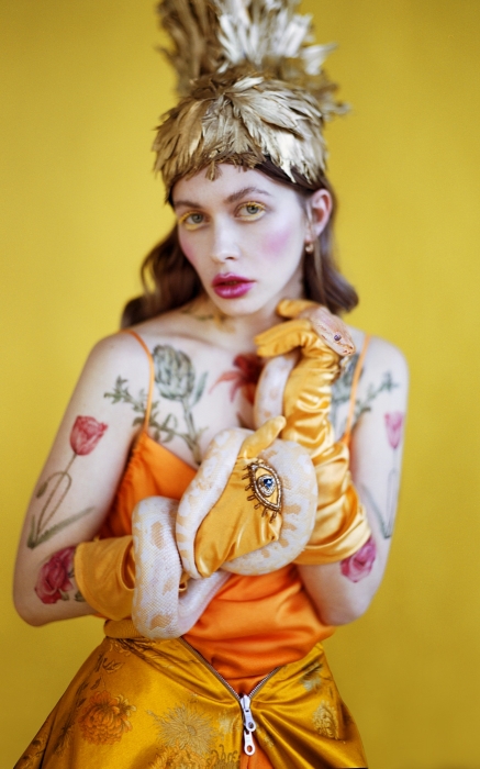 Uldus — главная арт + фэшн художница города, страны, а может, и мира. Но яркая форма в ее случае дополняется глубоким содержанием, а серьезные гендерные и межэтнические проблемы, которые поднимает Бахтиозина, оказываются сегодня более понятны зрителям за пределами России. Vogue Italia назвал ее фотографом года, уже второй раз она выступила на конференции TED, где стала первым русским спикером. Единственным художником из нашей страны она оказалась и на групповой выставке #TheArtistKnight под кураторством Джоанны де Вос и с участием Яна Фабра, Марины Абрамович, Дэмиена Херста и Йоко Оно, которая сейчас проходит в бельгийском Остенде. В родном Петербурге Юлдус открыла выставку «Сотворенная жизнь» в галерее Anna Nova, а для «Собака.ru» создала первую в истории журнала обложку-автопортрет.