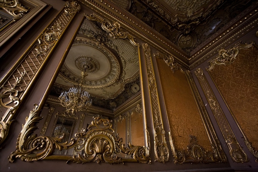 Гостиных в особняке было несколько, но сохранилась только одна. Она выполнена в стиле рококо и оформлена в теплых коричневых тонах. Стены разбиты на отдельные панно и затянуты подлинным шелком столетней давности. Два зеркала, поставленные друг против друга, создают иллюзию бесконечной перспективы.