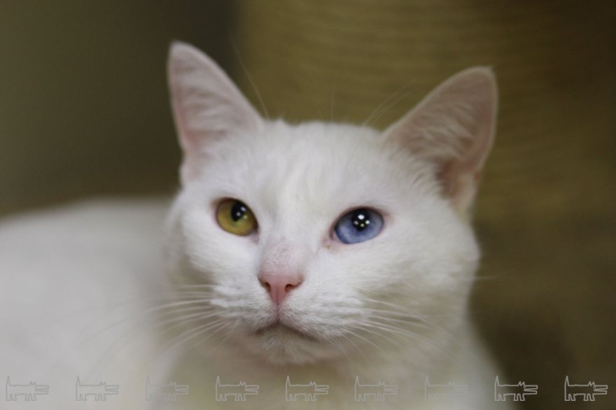Разноглазая мать кота Ахилла. Несмотря на постоянный уход, никак не может похудеть, а учитывая ее красоту, все ждут от нее котят.