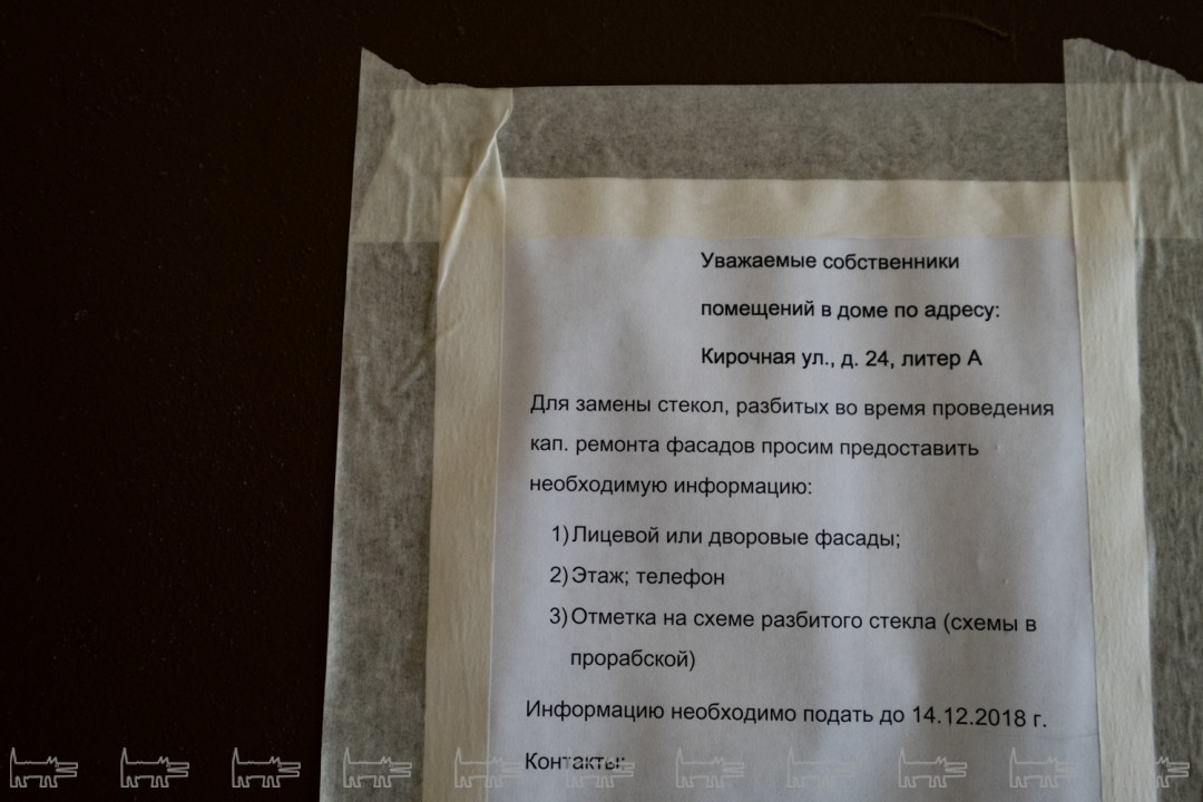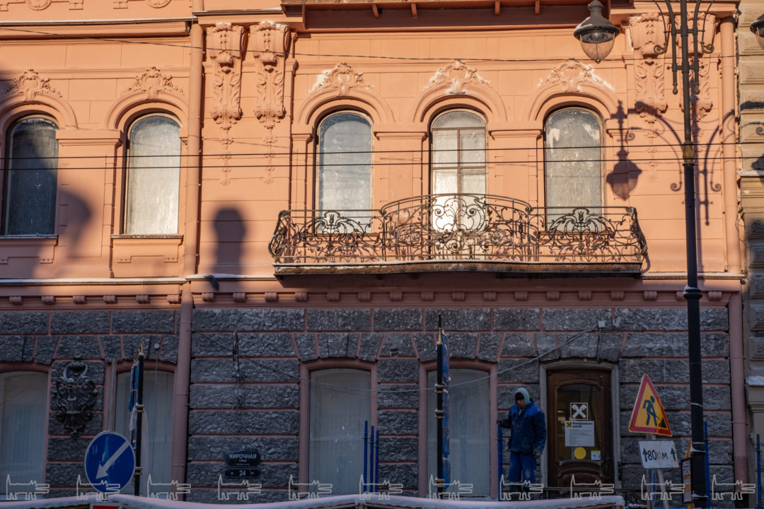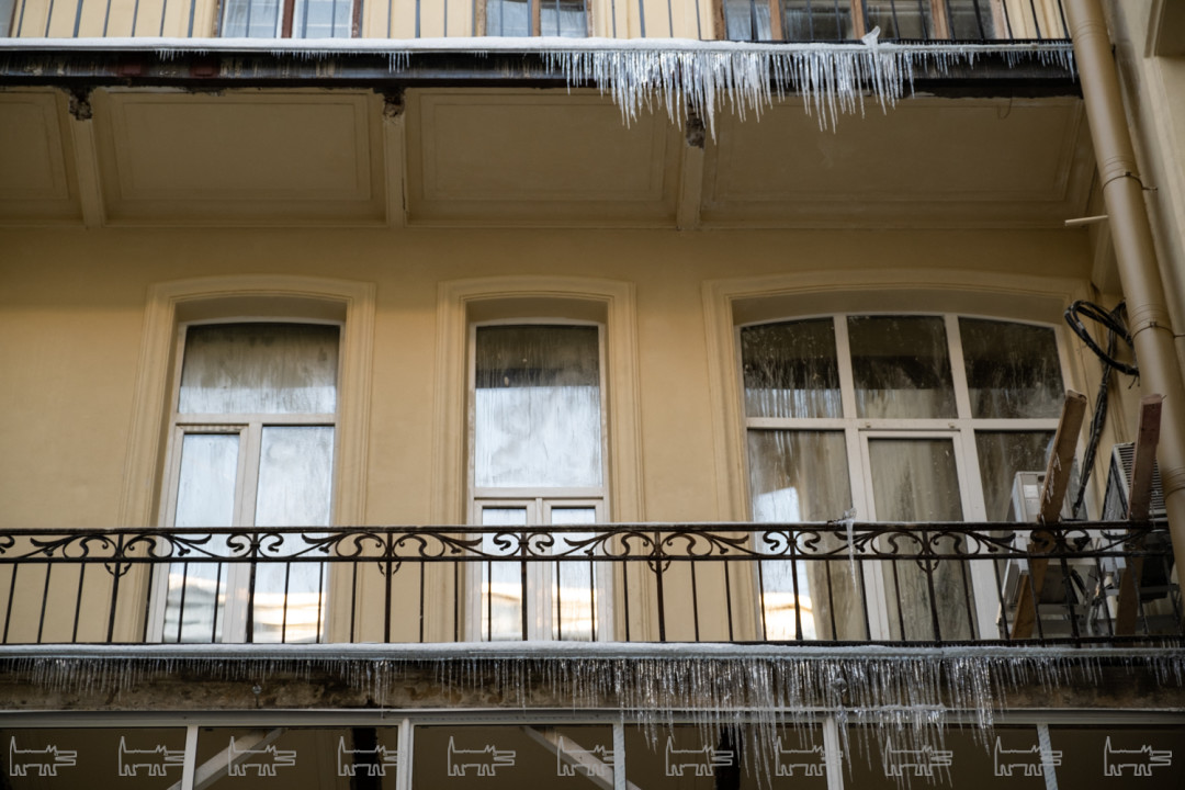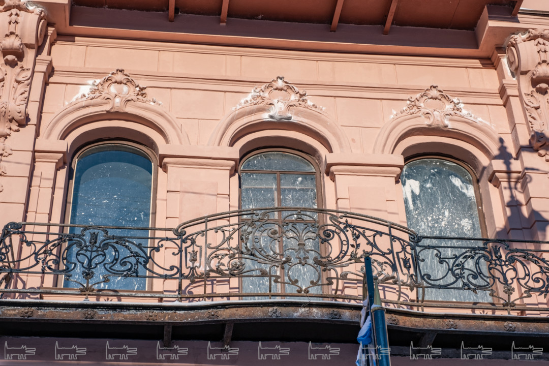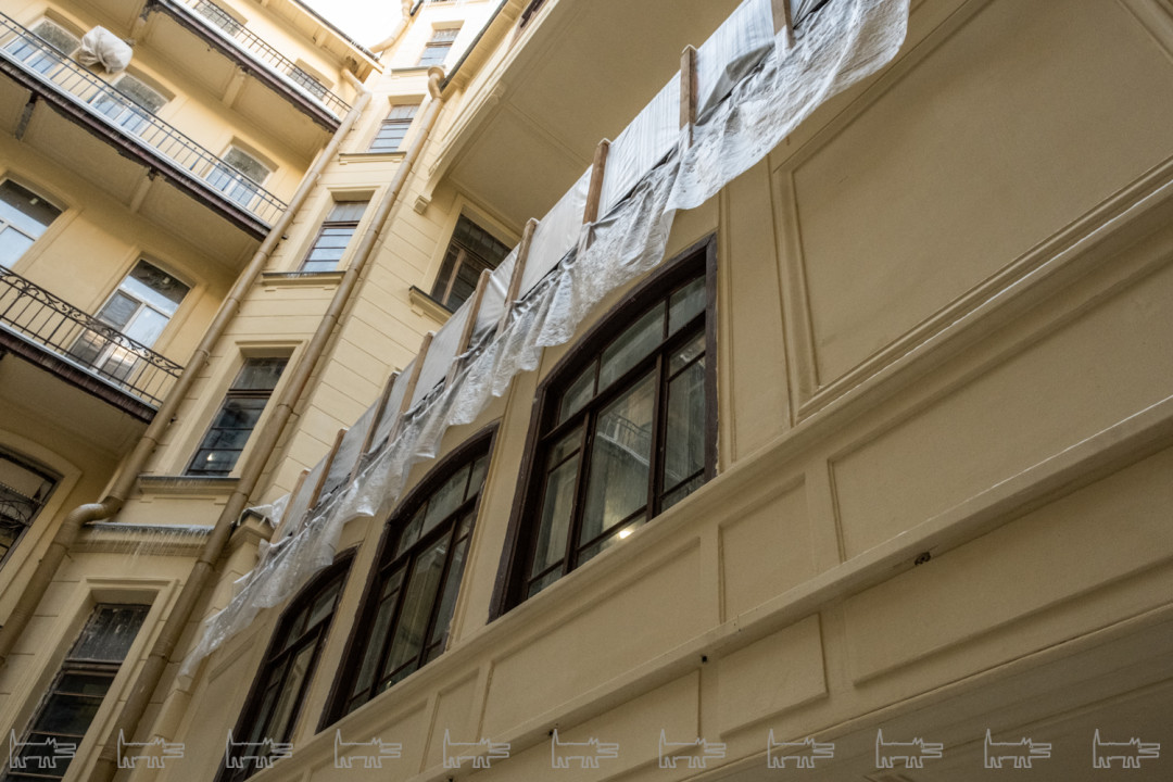 Мы, наверное, далеко не все можем увидеть, но где-то начиная с октября нарушения были по всем фронтам. Козырьки еще не вернули, весь лицевой фасад красили в декабре и январе при минусовой температуре – мы очень боимся, что все это сразу посыпется. Штукатурку наносили прямо на ржавые детали, у нас есть огромный фотобанк – хоть выставку делай. На краске образовался иней – дом покрылся пятнами, как ягуар, если присмотреться, вообще нигде нет ни одного ровного места, все криво-косо. Металлодекор так и не забрали на реставрацию – чернорабочие чистят его корщетками и «Уайт-спирит» и красят. КГИОП не отвечает на наше письмо с декабря.