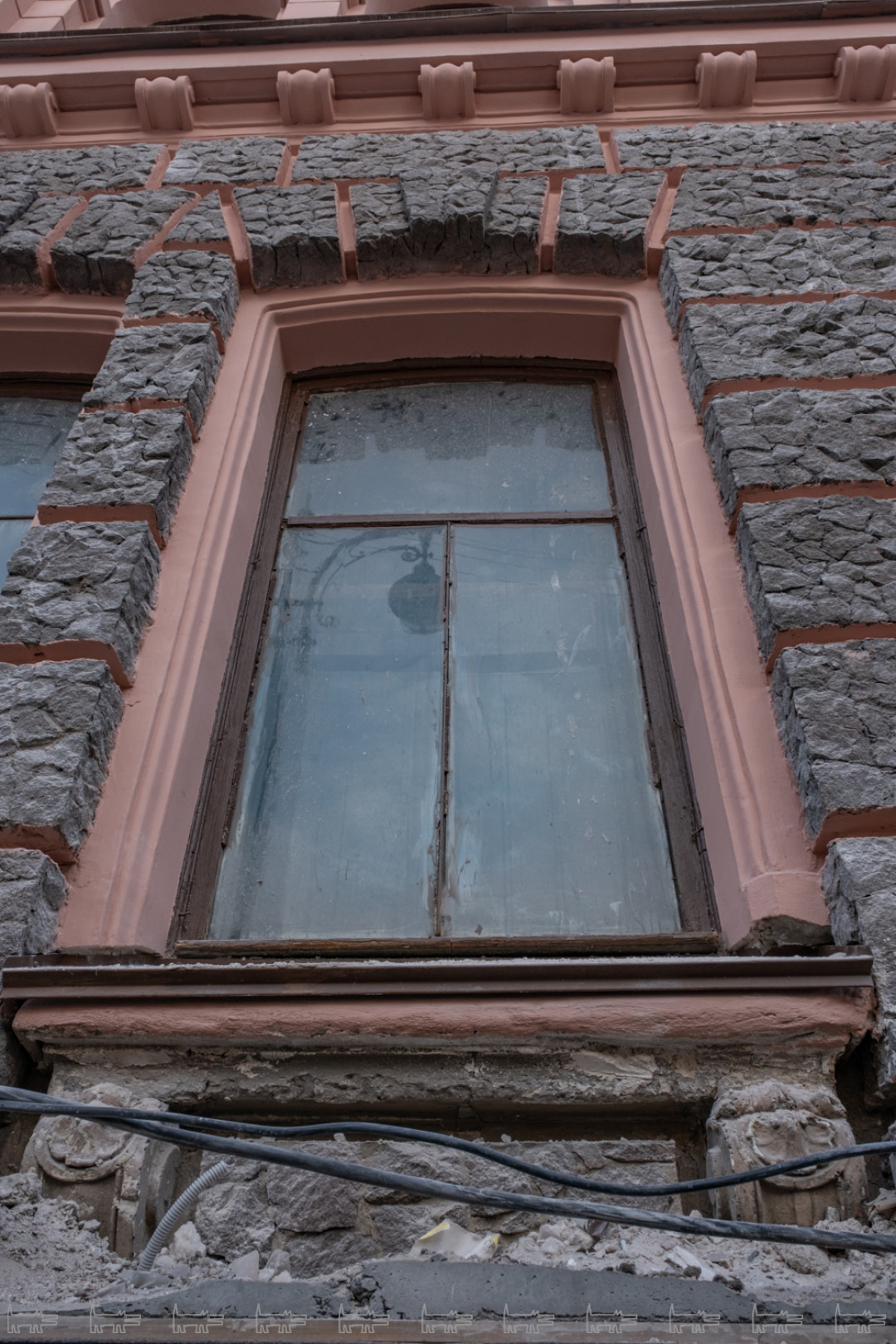 Например, по нормам окрашенный фасад должен простоять при температуре +8 дольше двух суток. А тут не проходило и пяти минут, как краска оказывалась в минусе. Мы наблюдали, как в -12 рабочие набирали краску на кисть, она тут же замерзала, а они пытались как-то ее разогреть, чтобы закрасить то, что уже потрескалось. Дом изначально был двухцветным, цвета эти известны, но это не было учтено, так что сейчас у нас очень странно сочетаются желтый и розовый. Исторические тона мы потеряли.
