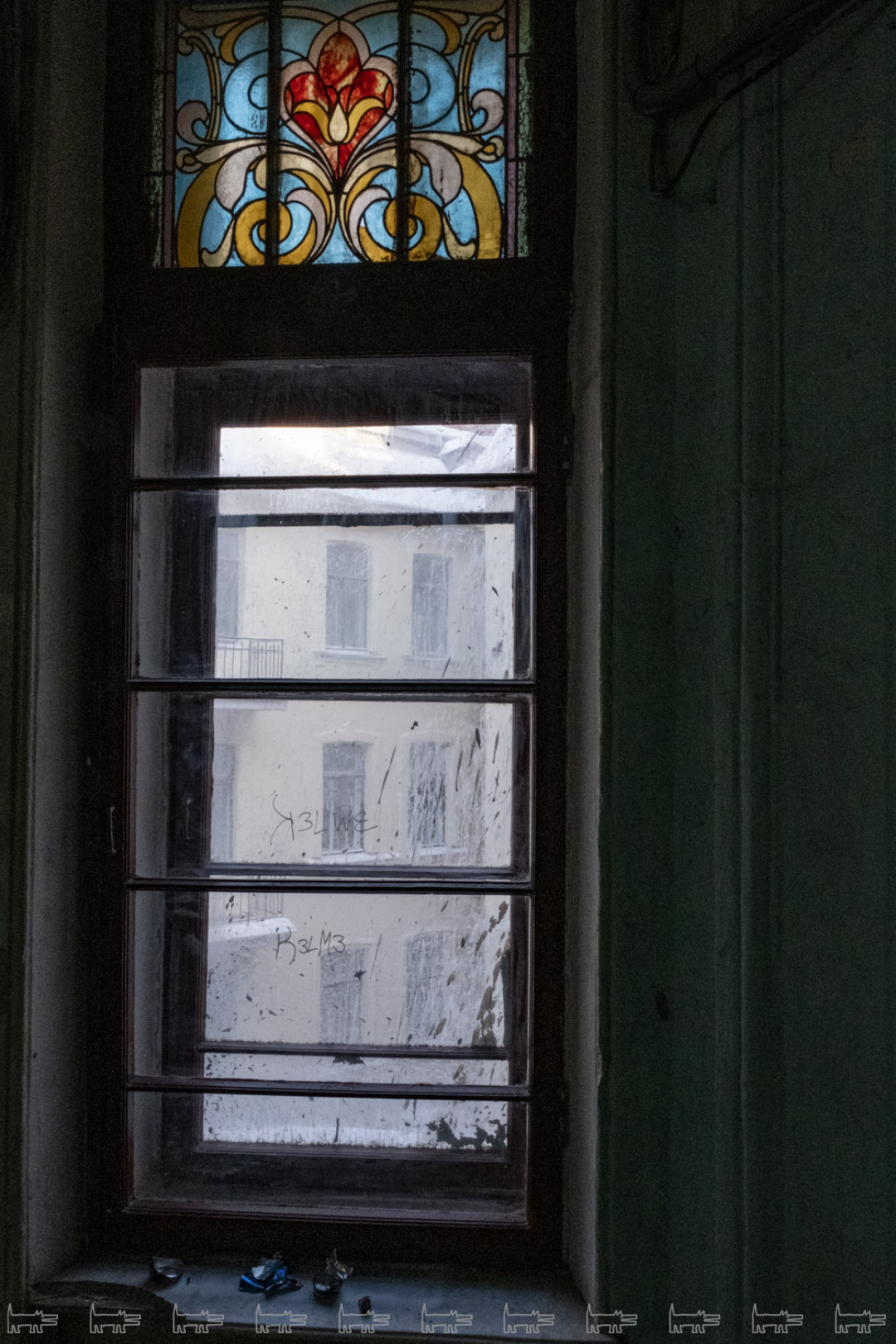 Огромный ущерб нанесли окнам – их залили грунтовкой, а она вступает в химическую реакцию со стеклом. Рабочие пытались счистить пятна и царапали окна лезвиями – сейчас неповрежденное окно найти в доме очень сложно. По правилам, прежде чем начинать окраску, окна они должны были закрыть, но этого не сделали даже с витражами – несмотря на предписания, защитили только четыре из всех 20. Во всем , что происходило, было нелепое пренебрежение и неуважение к истории.