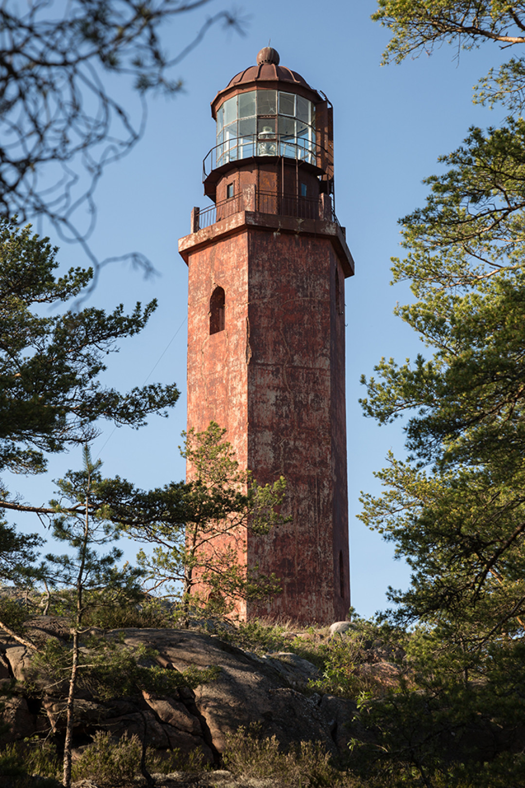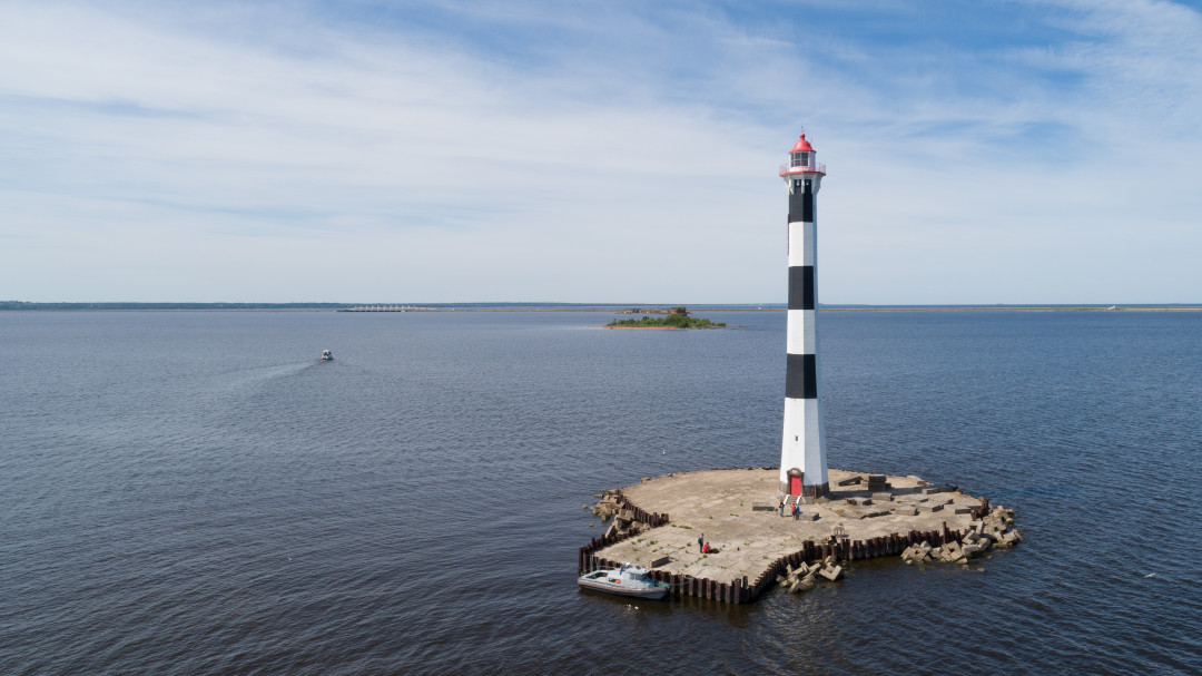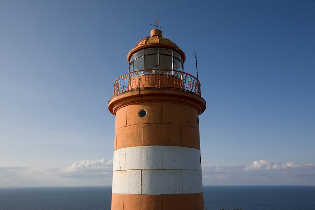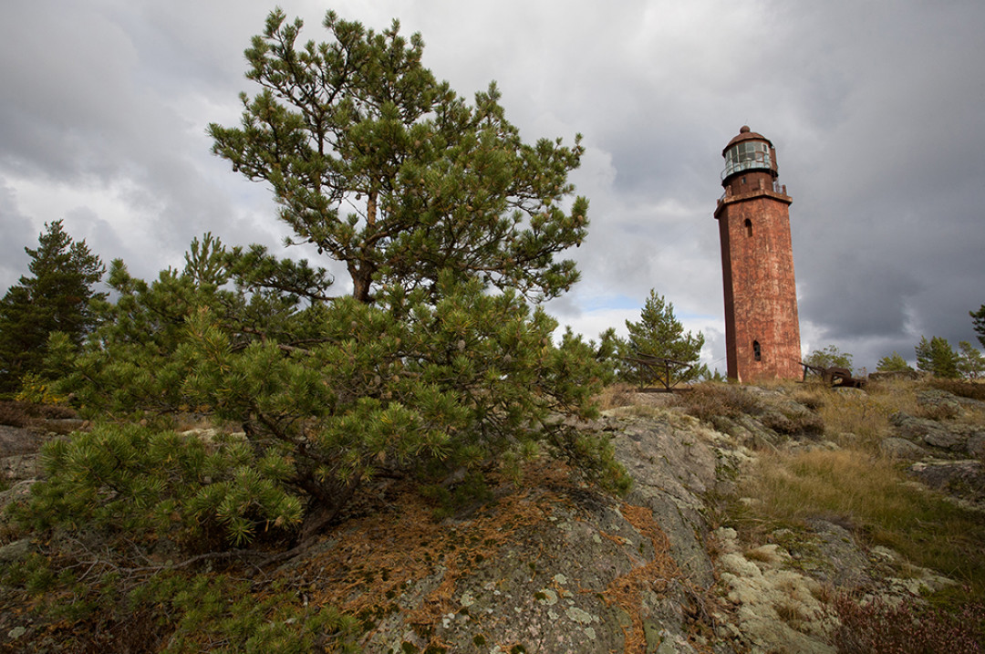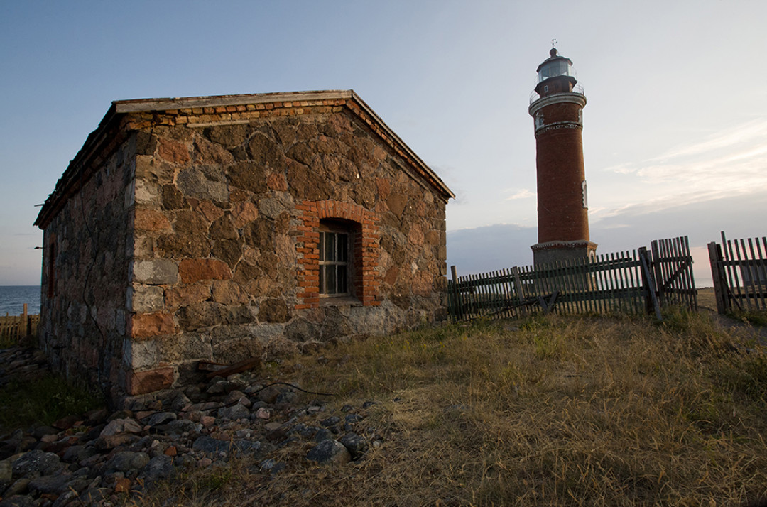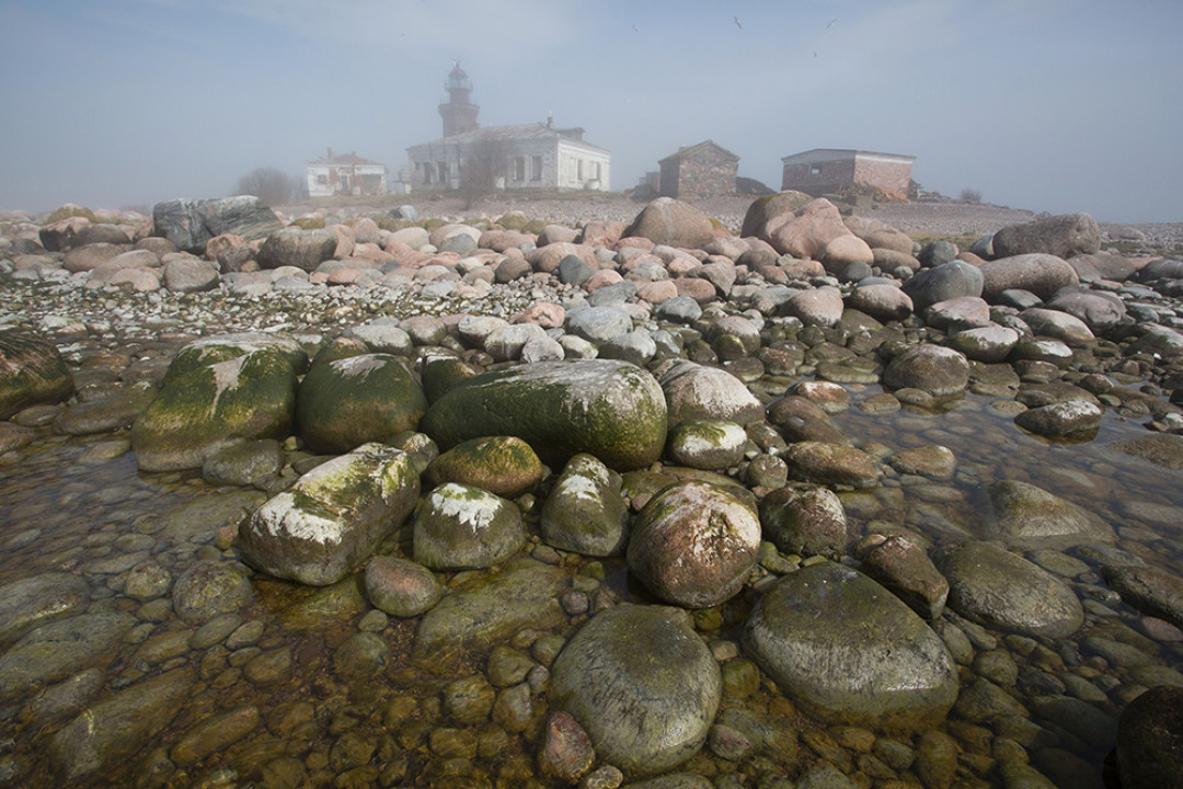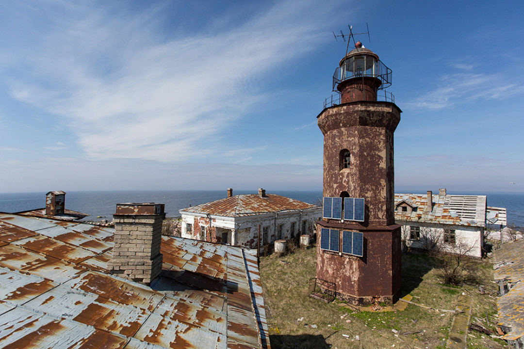 Маяк, построенный на острове Гогланд в Финском заливе. В переводе со шведского «Hogland» означает «Высокая земля». В настоящее время для посещения острова нужно оформлять специальный пропуск, а воды вокруг него имеют печальную славу: вокруг затонуло несколько десятков кораблей. Маяк был основан в 1861 году, нынешняя кирпичная башня была возведена в 1905 году. В 1872 году на маяке была установлена первая в России пневматическая сирена – устройство, подающее звуковой сигнал в условиях недостаточной видимости маячного огня.