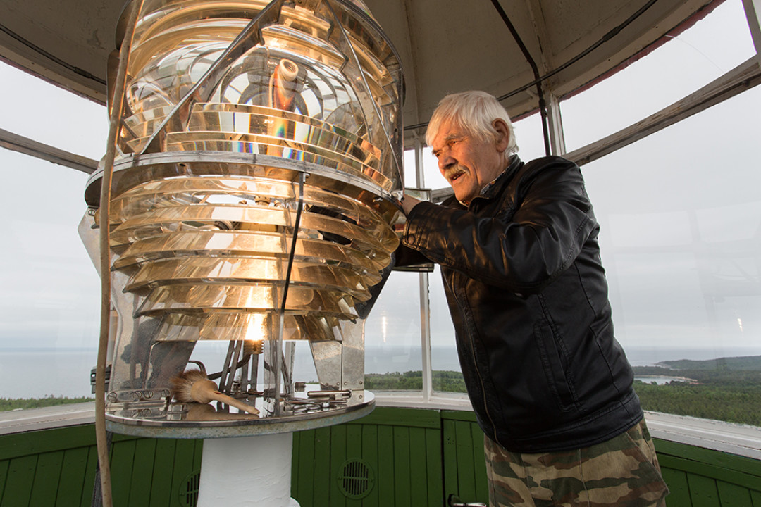 Заброшенный маяк на одноименном мысу в восточной части Онежского озера, входящего в состав государственного природного заповедника. Несмотря на то, что маяк не действует уже почти 50 лет, он все равно привлекает множество туристов. Недалеко от него можно найти знаменитые петроглифы, созданные около 5000 лет назад и ставшие объектом пристального внимания ученых-археологов.