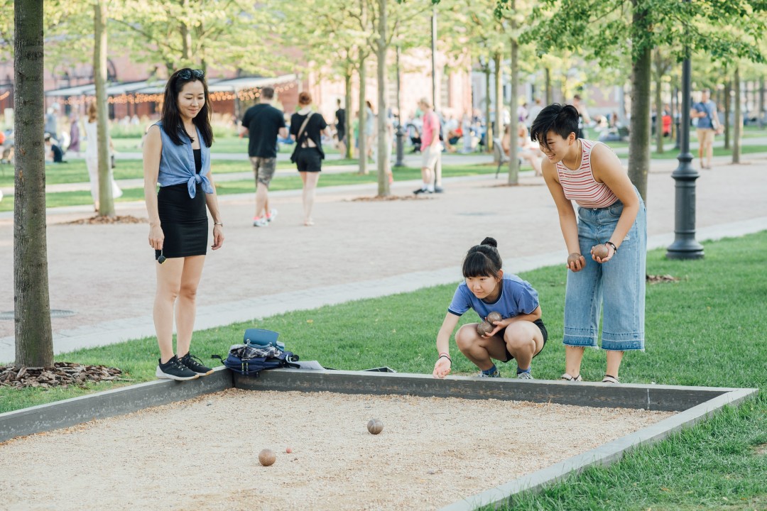 Студия Дианы Вишневой Context Pro по утрам научит асанам из йоги, на площадке для петанка дважды в неделю будет работать инструктор, а на каждое второе воскресенье лета намечен сбор шахматного клуба «Бобби Фишер» с сеансами одновременной игры и уроками от гроссмейстеров – все это на открытом воздухе в парке. А двор «Бутылки» несколько раз за сезон станет рок-н-ролльной танцплощадкой, как в фильме «Стиляги», с бесплатными мастер-классами по буги-вуги и линди-хопу.