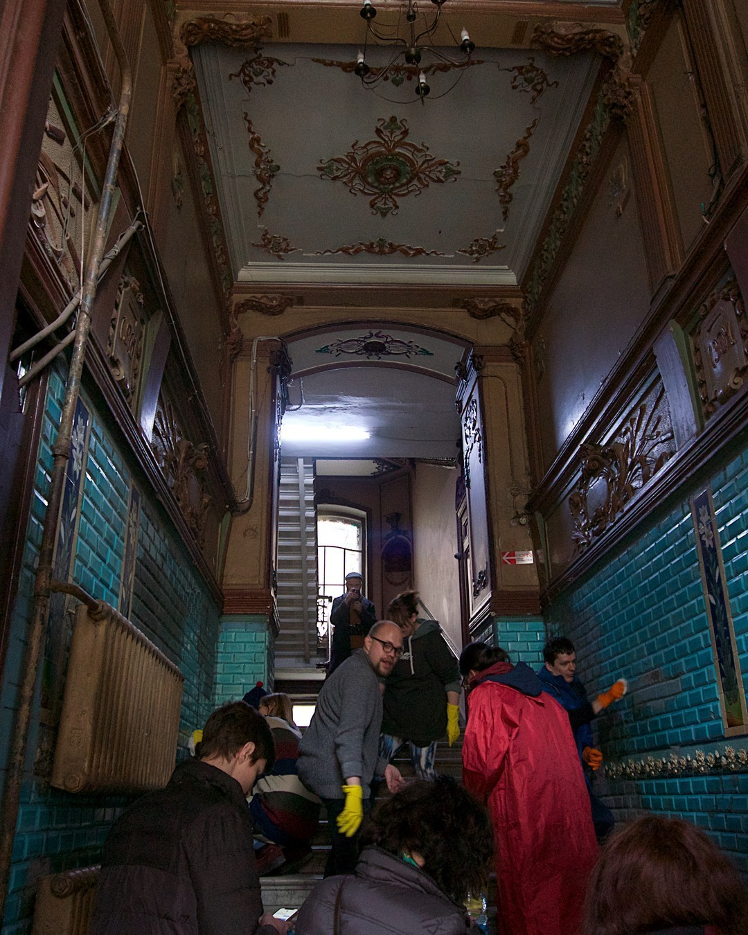 Ксения: Мы помыли пока пять парадных, но не хотим подменять собой жилкомсервис. Для нас важно, что мы находим в парадных уникальные архитектурные детали — это может быть печь, настенные плитки, деревянные панели, майолики. Перед помывкой мы собираемся проводить мастер-классы, экскурсии — в качестве бонуса за работу для волонтеров. Наша задача — не стать звездами краеведения, а дать людям понять, что они тоже могут что-то сделать. Мы не супергерои и не совершаем сверхусилий — нам достаточно было просто предложить им к нам присоединиться. Желание, мне кажется, у многих людей существовало и раньше — просто никто не давал им импульса.