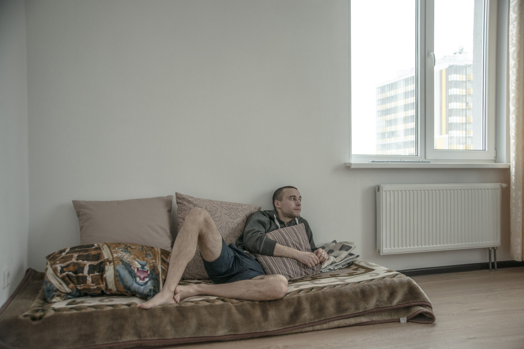 Мои герои в основном — приезжие: молодые и активные, которые готовы идти на контакт. Люди другого склада и не согласились бы впустить в дом фотографа, который снимает проект, похожий на реалити-шоу. В жилом комплексе в Кудрово я увидела Россию в миниатюре: география моих героев — от Хабаровска до Мурманска и Воркуты. Ребята берут тут ипотеку и начинают завоевывать «Новую землю». Петербуржцу этого не понять — мы тут рождены и все знаем, нам не надо добиваться сверхуспехов, чтобы что-то кому-то доказать. Для моих героев недорогое жилье в новостройке в пригороде Петербурга — это важнейший этап в жизни, который формирует личность: «Я переехал и смог купить квартиру».