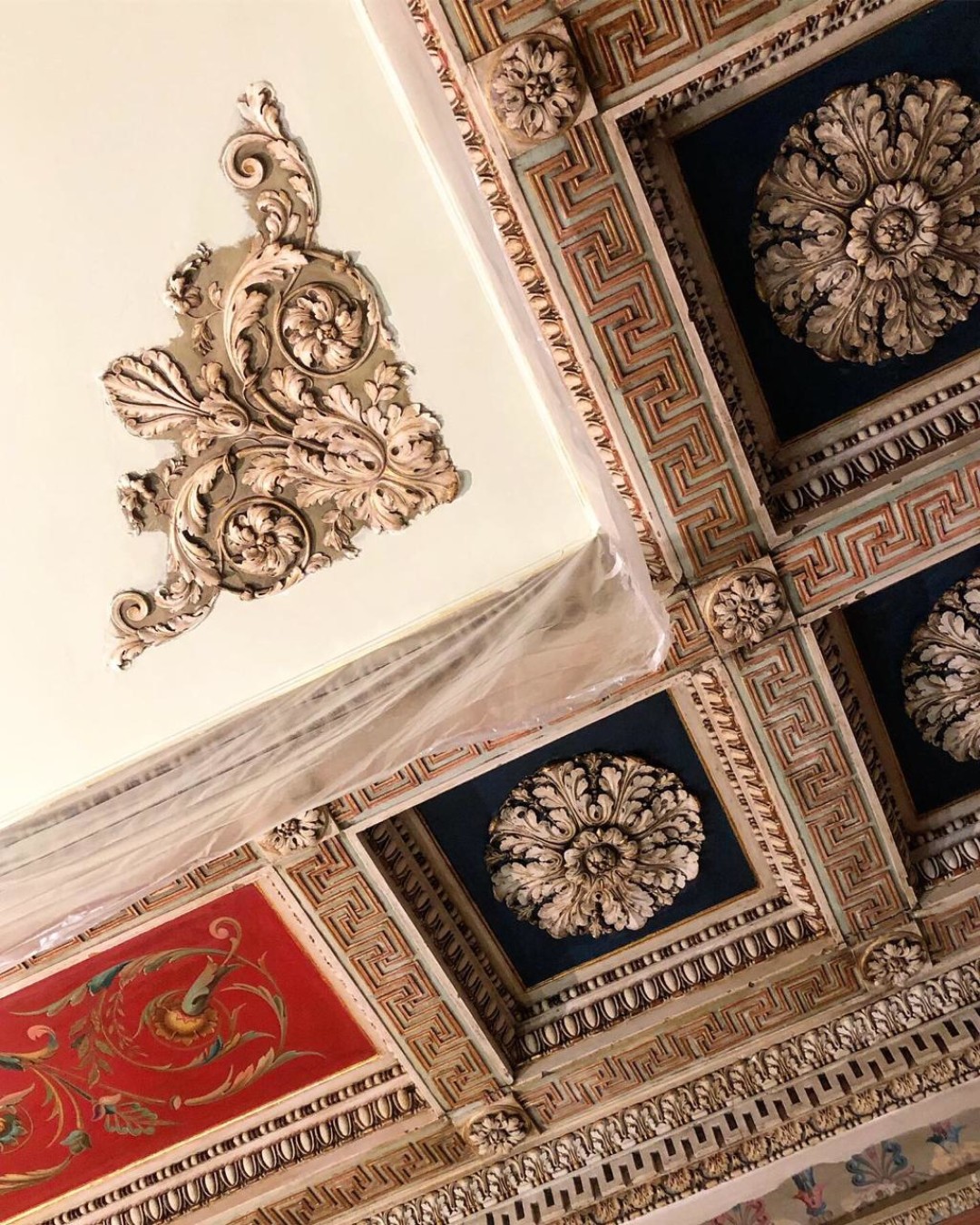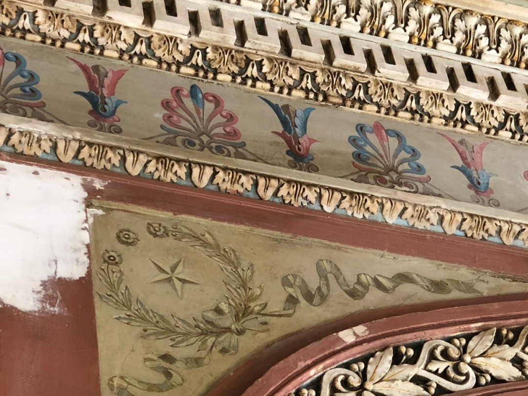 По словам представителей ВООПИиК, с росписями на потолке «обходятся не очень бережно». «Вместо двух старинных дверей владельцы школы решили сконструировать одну, собрав их по частям. С росписями на потолке пока тоже обходятся не очень бережно: центральный плафон одной из комнат зашпаклевали. Сбили и часть родной лепнины над входом, «чтобы не упала на голову», как говорится в инстаграм-видео. Родные деревянные окна, однако, обещают сохранить», — написали они 10 сентября.