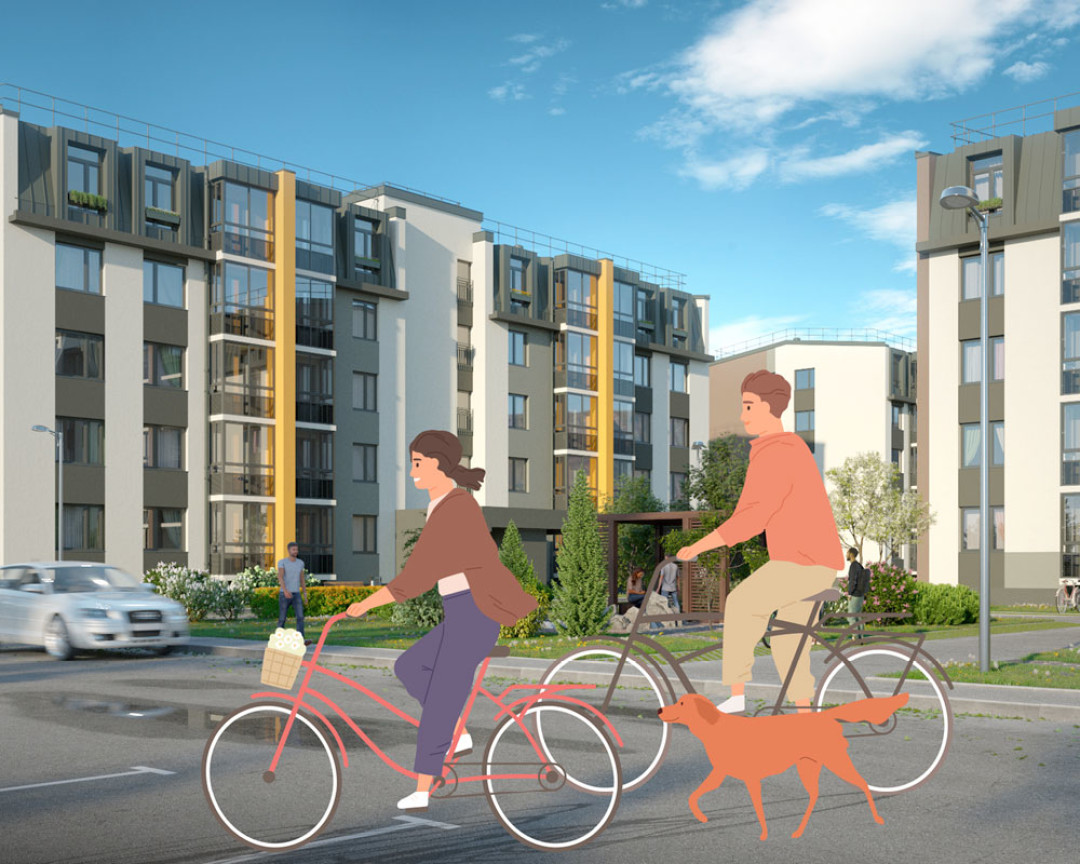 «Мы поженились в прошлом году. Перед этим снимали квартиру в центре. Но решили перебраться поближе к природе. Летом мы любим кататься на велосипедах, ходить на байдарках, зимой — обязательно лыжи. Кстати, здесь есть кладовая в подвале, где можно хранить спортивный инвентарь. У нас собака, и прогулки с ней в городе были постоянной проблемой. А здесь даже экопакеты есть для питомцев! Мы поддерживаем тренд на экосознательность и рады, что строители позаботились о том, чтобы у нас была энергоэффективная квартира. А еще приятно, что образовалось комьюнити жильцов: обсуждаем раздельный сбор мусора, деньги, вырученные от сбора макулатуры, идут на саженцы, а на клумбах у нас растут не только цветы, но и ароматные травы».