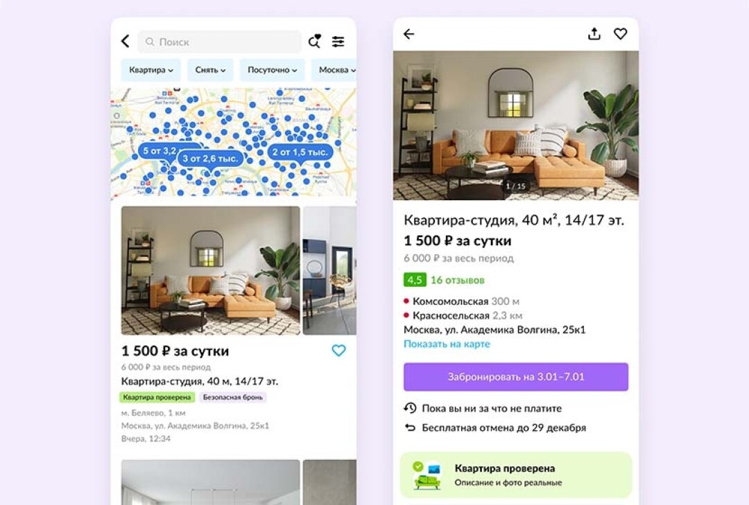 Новый сервис поможет пользователям быстрее бронировать удобные варианты для посуточной аренды из базы объектов, прошедших проверку экспертами Авито Недвижимости (то есть опция будет доступна только для объектов с отметками «Квартира проверена» и «Безопасная бронь»). Это значительно снизит риск отмены заселения и делает сделку надежнее. Кроме того, арендаторы получают возможность оплачивать проживание сразу на платформе, без звонков арендодателю или управляющему жилья. За безопасностью депозита следит Авито – денежные средства отправляются собственнику только после заселения гостя. Сервис вернет деньги, если гостя не заселят, попытаются заселить в квартиру не из объявления или возникнут другие проблемы. Также при необходимости Авито Недвижимость оказывает пользователям круглосуточную голосовую поддержку по всем возникающим вопросам.