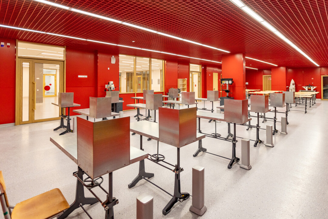Другой наш принцип — универсальность и гибкость. Классы для практической работы по химии, физике или биологии могут объединиться для занятий на стыке предметов в рамках кросс-предметного образования. Практикумы для занятий по технологии оснащаются всеми необходимыми инструментами для обработки материалов: 3D-принтеры, лазерные резаки, паяльные, сверлильные, дробильные аппараты, оборудуем швейные мастерские и кулинариумы. В некоторых школах последние располагаются рядом с горячим цехом кухни и отделены от него стеклянной стеной. Так дети видят, как повара готовят. У наших мастерских нет гендерной привязки: мальчик может стать в будущем дизайнером или конструктором одежды, а девочка инженером. Подростки не хотят существовать в шаблонах.