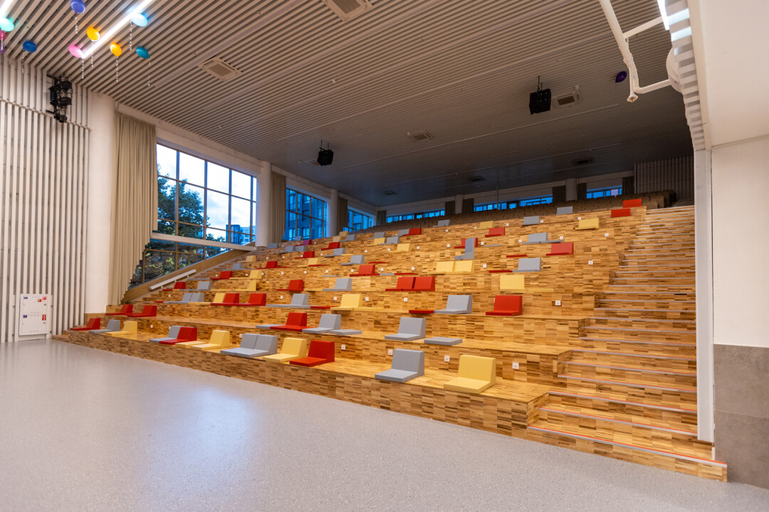 Третий принцип — психологический комфорт. Только дружелюбная среда побуждает к новым знаниям или успехам, помогает справиться со стрессом, который часто бывает у первоклашек, найти друзей или, наоборот, укромное место для работы или рефлексии. Возможность укрыться «в норке» тоже очень нужна детям. Такая среда создается буквально из всего — планировочные решения, цветовая гамма стен и полов, мягкая мебель, ниши в стенах, даже подвесные гамаки.