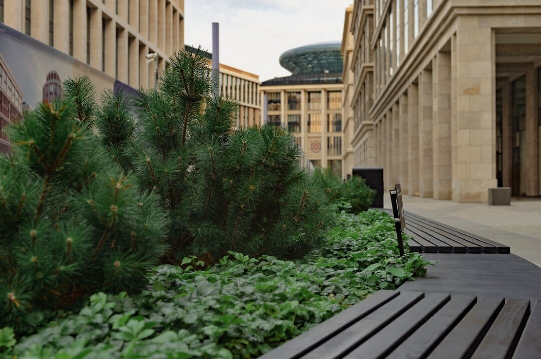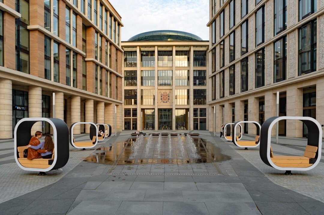 Создание бизнес-центров, которые просто выполняют функцию рабочих мест, в прошлом: современный офис не только предоставляет комфортные условия работы и инфраструктуру для отдыха, но и гармонично встраивается в жизнь района — и города в целом. Поэтому важной функциональной и эстетической задачей проекта стало создание такого современного и открытого общественного пространства в комплексе, которым могут пользоваться не только сотрудники «Невской Ратуши», но и жители Петербурга, и туристы. Так на территории делового центра помимо офисов появились выставочный и конференц-залы, пешеходная площадь со скамейками и фонтанами. Ее украшают цветочные клумбы, декоративные фонари и зеленые островки. На всей территории, включая паркинг, отсутствуют перепады высот и установлены пандусы для маломобильных групп населения.