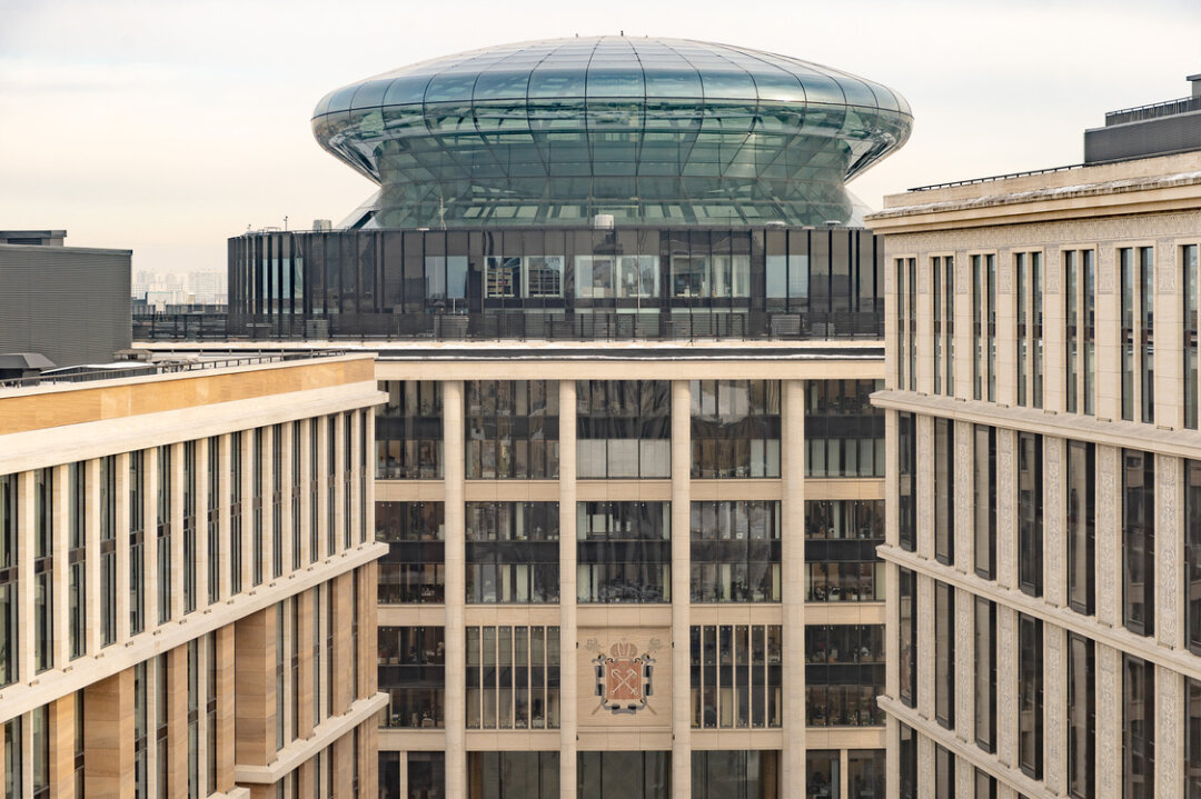 Уже знаменитый среди горожан стеклянный купол здания администрации стал высотной доминантой Песков. Возвышаясь над землей на 55 метров, он напоминает летающую тарелку. В период строительства появление такой яркой детали в сдержанном и классическом Петербурге вызвало немало споров у горожан, но в итоге она стала новой городской достопримечательностью. Его остекление — настоящее инженерное искусство: здесь использованы гнутые стекла, солнцезащитные панели и просветленные стеклопакеты в зоне обзора. Зимой стекла подогреваются, что позволяет избежать обледенения.