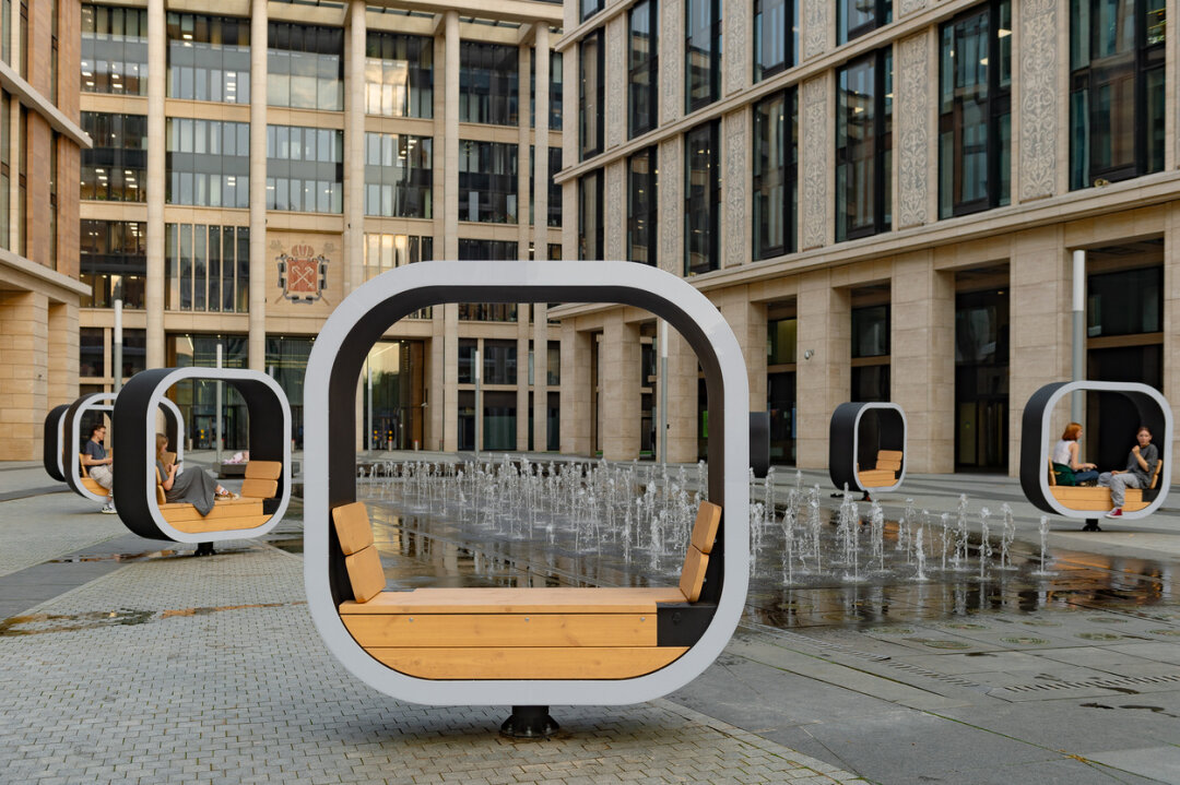 Еще одним акцентным элементом «Невской Ратуши» стал фонтан на главной площади. Его каскадные струи, поднимающиеся на высоту от 10 сантиметров до 1,6 метра, создают эффект танцующей воды, а вечером он оживает благодаря динамичной светодиодной подсветке. Управляет фонтаном полностью автоматизированная система, она фильтрует воду и регулирует уровень струй. В прошлом году девелопер добавил рядом с фонтаном зеленые островки и вращающиеся скамейки с футуристичным дизайном и встроенной зарядкой для гаджетов — и площадь обрела свой законченный уютный вид. Здесь приятно прогуляться или просто посидеть у воды, особенно в теплое время года. А еще это место стало популярным для эффектных кадров.
