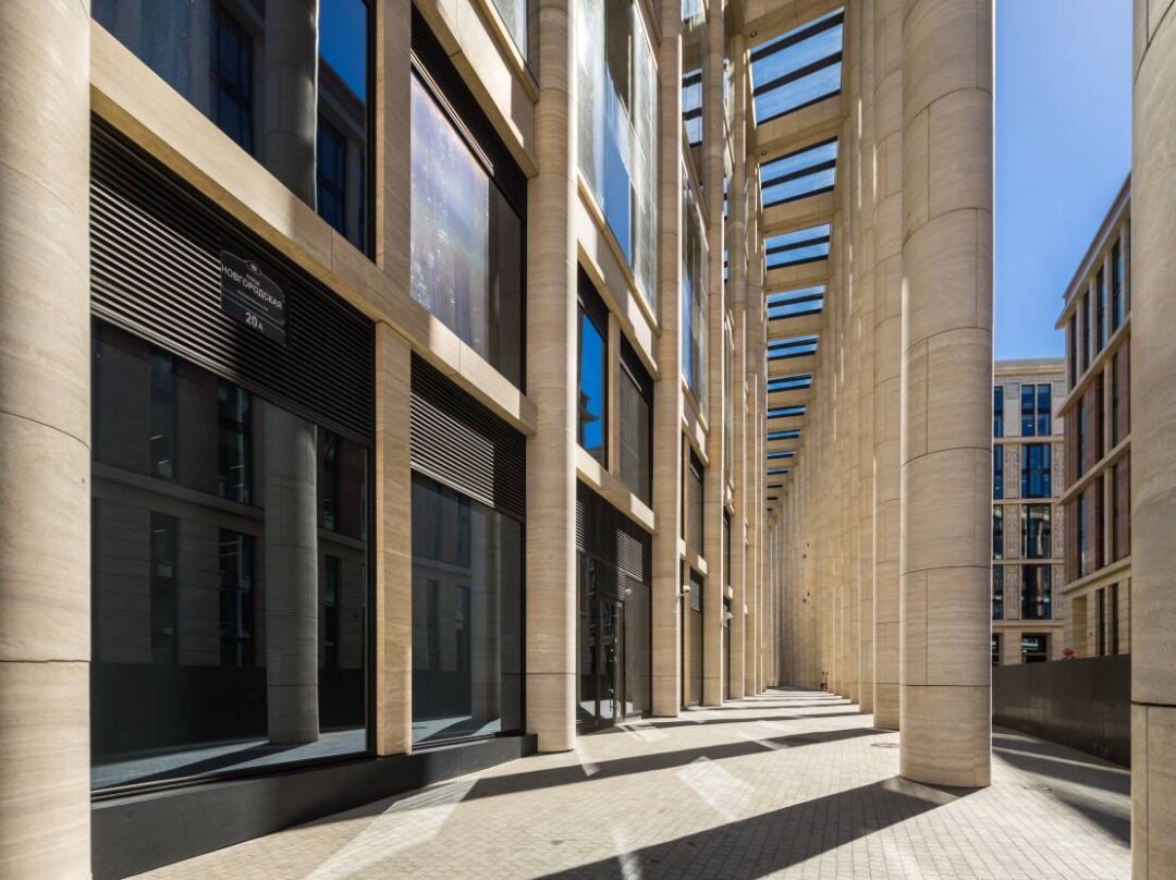Корпуса делового квартала имеют разную этажность: от 9 до 11 наземных этажей, а под землей расположен паркинг почти на 2 000 мест. Общая площадь зданий первой и второй очереди — более 250 000 м². Внутренний двор занимает около 3 000 м² — это большое и комфортное пространство для отдыха и прогулок.