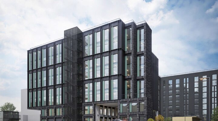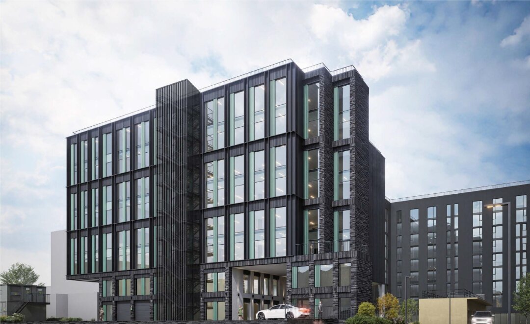 «Стилистическое и цветовое решение ориентировано на фасады существующего апарт-отеля. Фасады здания выполнены из фиброцементных плит темного и светлого оттенка. Внутренний двор и стены офисных помещений для лучшей освещенности окрашиваются в светлобежевый цвет. Выбранная архитектурная концепция направлена на формирование завершенного композиционного облика внутриквартального пространства», — сообщили в пресс-службе КГА.