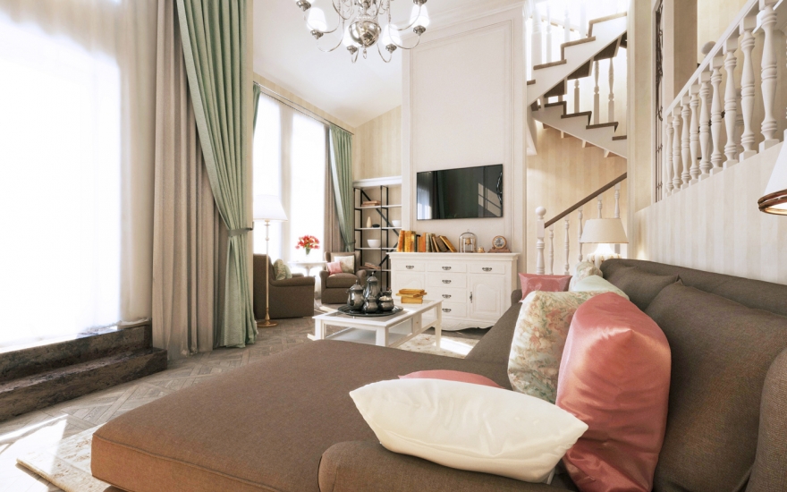 Таунхаус можно подобрать как для большой семьи, так и для пары — все дома имеют свободную планировку. В каждом есть помещение под сауну, терраса и балкон, в гостиных — камин. Будущий владелец может самостоятельно разработать дизайн интерьера дома или воспользоваться возможностью выбрать готовый проект в одном из стилей: прованс, современный или классика.