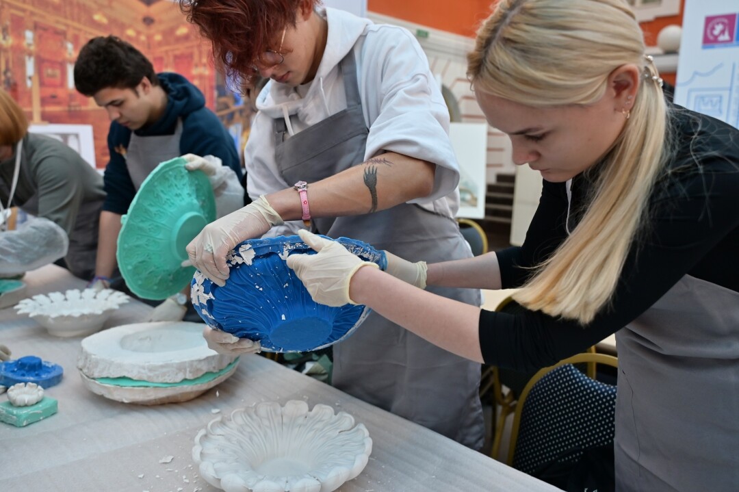 Сотрудники Государственной академии художеств им. Ильи Репина провели мастер-класс по реставрации гипсовой скульптуры. Среди ведущих были не только преподаватели, но и опытные студенты старших курсов.