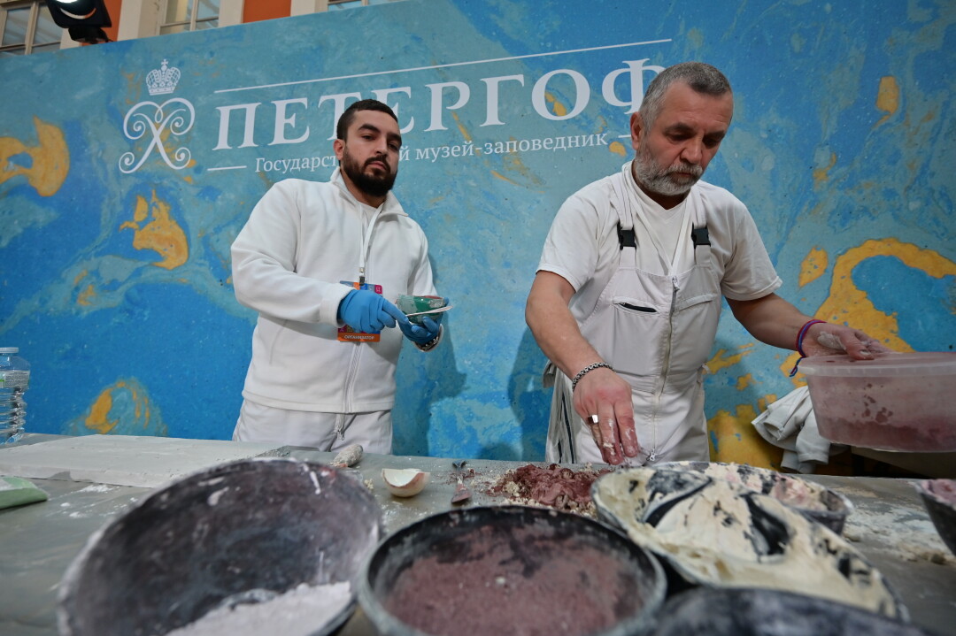 реставратор мрамора, Петербургская реставрационная мастерская. Провел вместе со своей бригадой мастер-класс по работе с искусственным мрамором