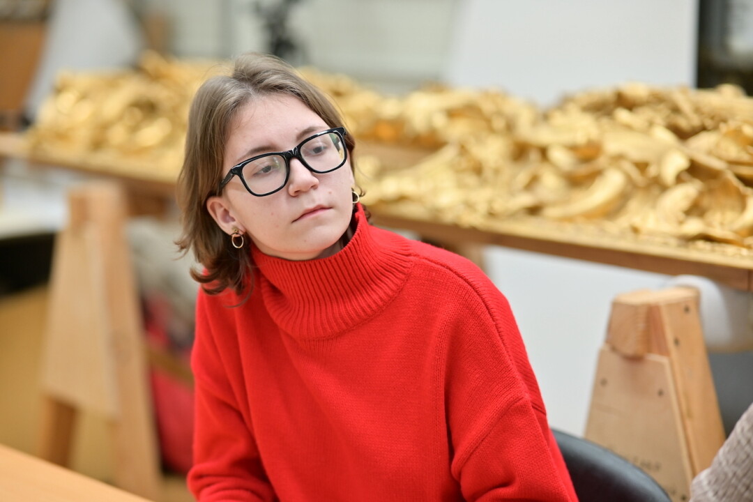Проект объединил много мастерских в одном месте, и это помогает в выборе специализации. Сейчас вот мы реставрируем лепнину и видим живой пример того, как это делают более опытные студенты и настоящие мастера.