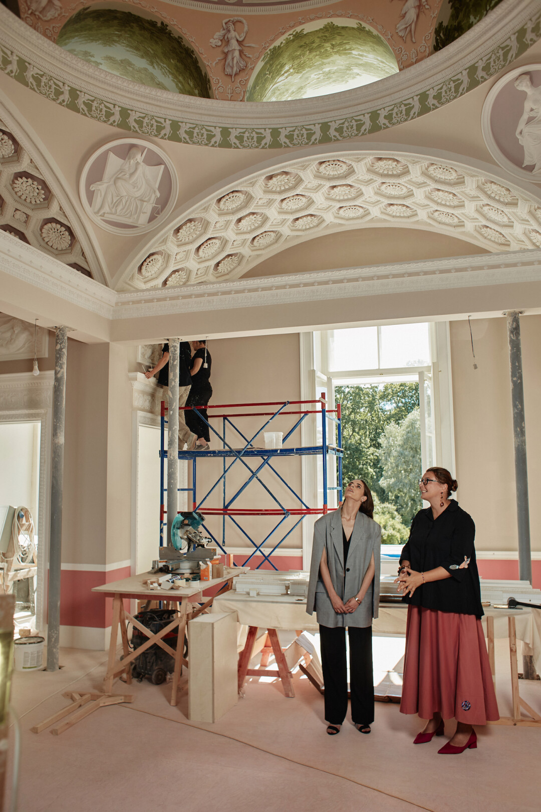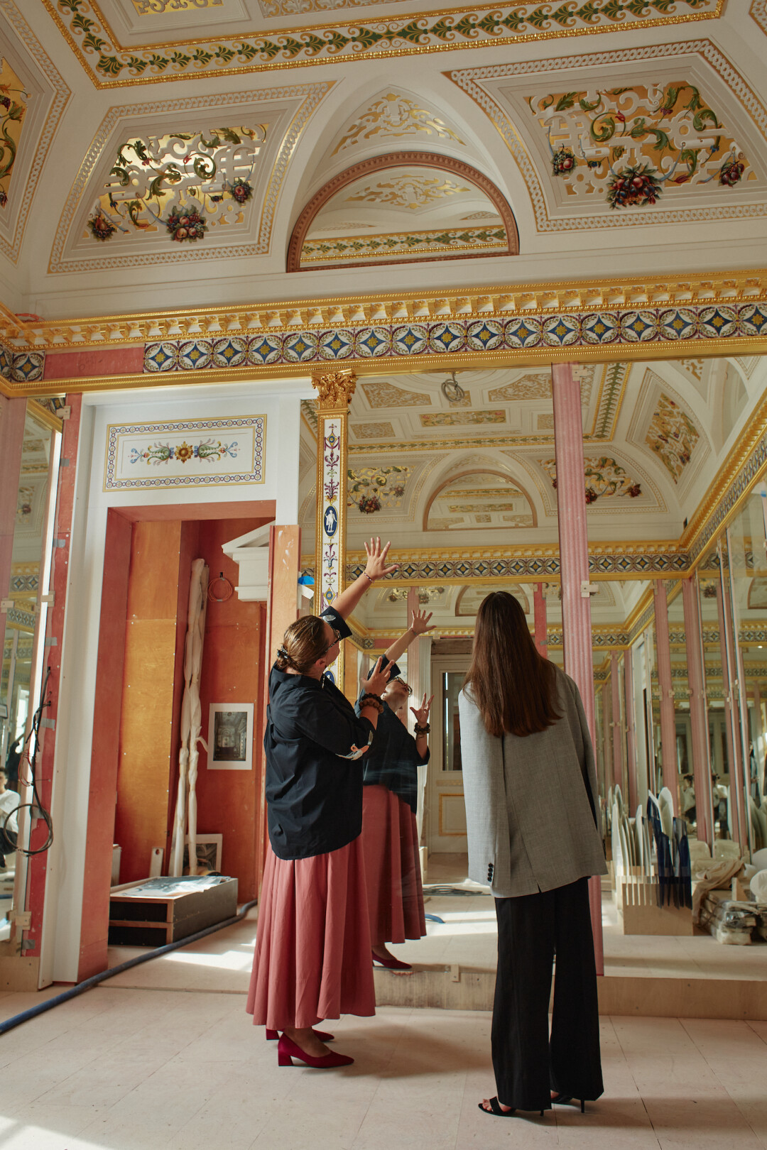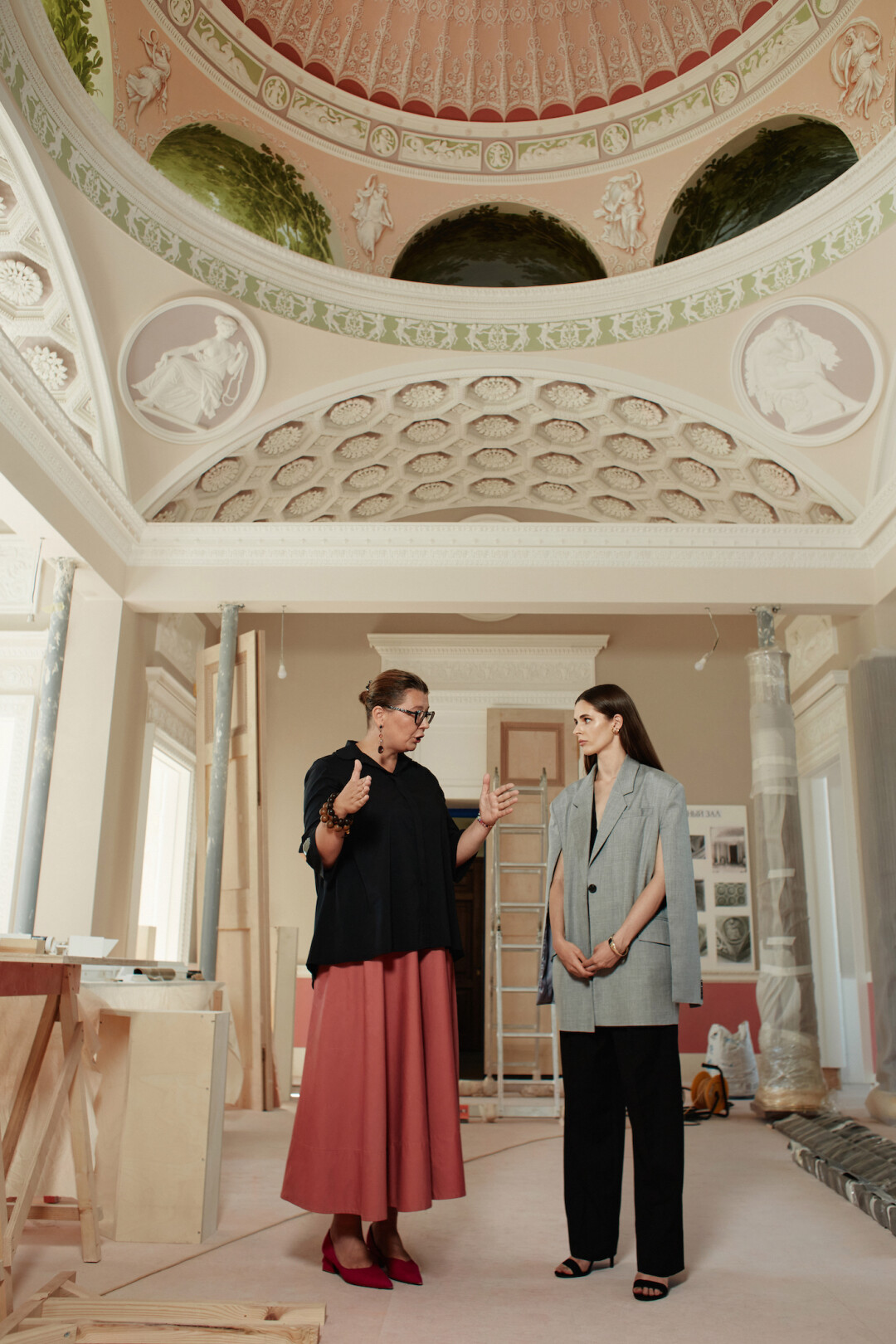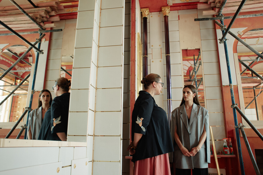 Грандиозный реставрационный проект «Екатерина II. Личное пространство» при поддержке ПАО «Газпром», в рамках которого воссоздаются залы Зубовского флигеля Екатерининского дворца в Царском Селе, длится почти четыре года. Сегодня работы по декоративной отделке одновременно проходят в восьми помещениях: Китайском и Купольном залах, Зеркальном, Синем и Серебряном кабинетах, Опочивальне, Рафаэлевской и Туалетной комнатах. Мы пригласили в Зубовский флигель полюбоваться созданием красоты и проникнуться уникальным моментом лауреата премии «ТОП 50. Самые знаменитые люди Петербурга» — актрису Елизавету Шакиру. Экскурсию провела главный архитектор ГМЗ «Царское Село» Мария Рядова. Хотя на самом деле получилась вдумчивая и увлекательная беседа двух героев.