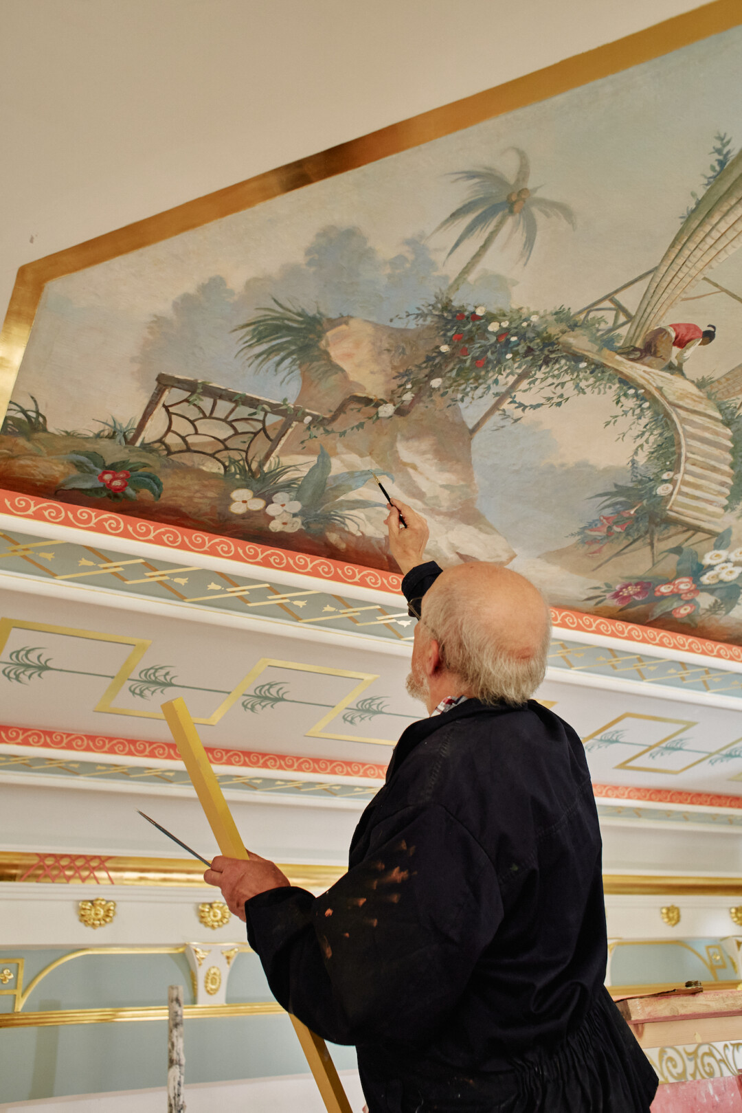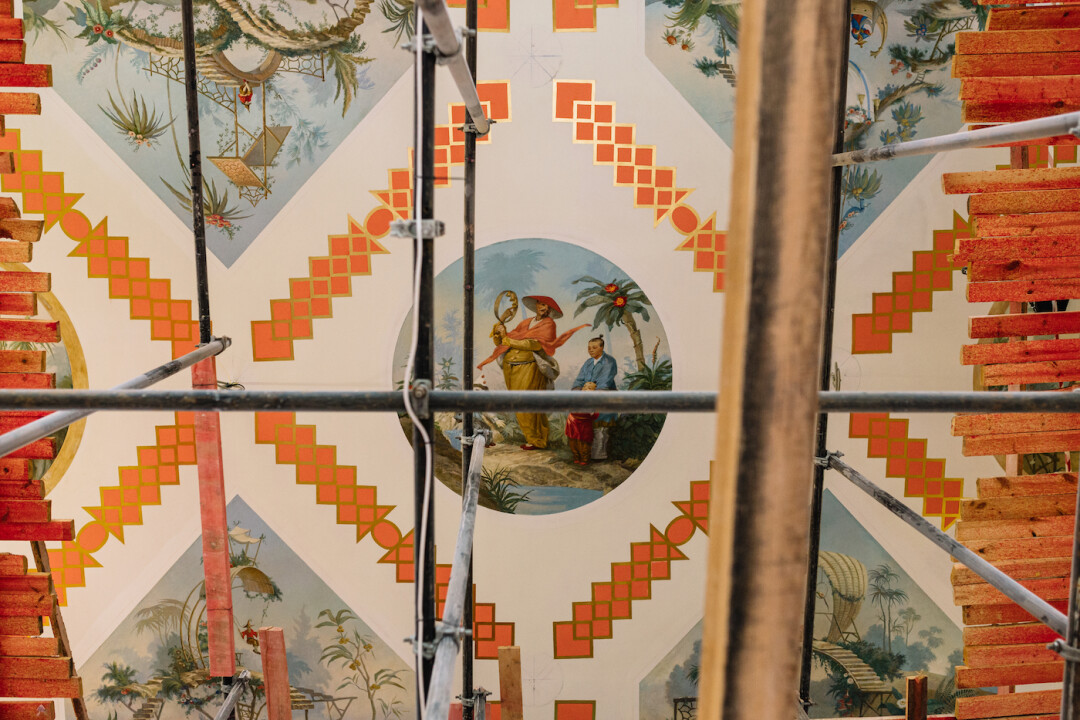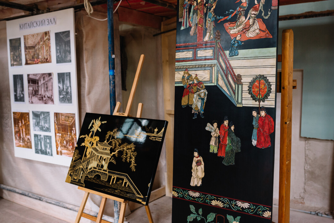 А вот с Китайским залом вышло по-другому. Сохранились интерьерные акварели, на которых видна изначальная роспись плафонов, и мы приняли решение воссоздавать отделку на первоначальный период .