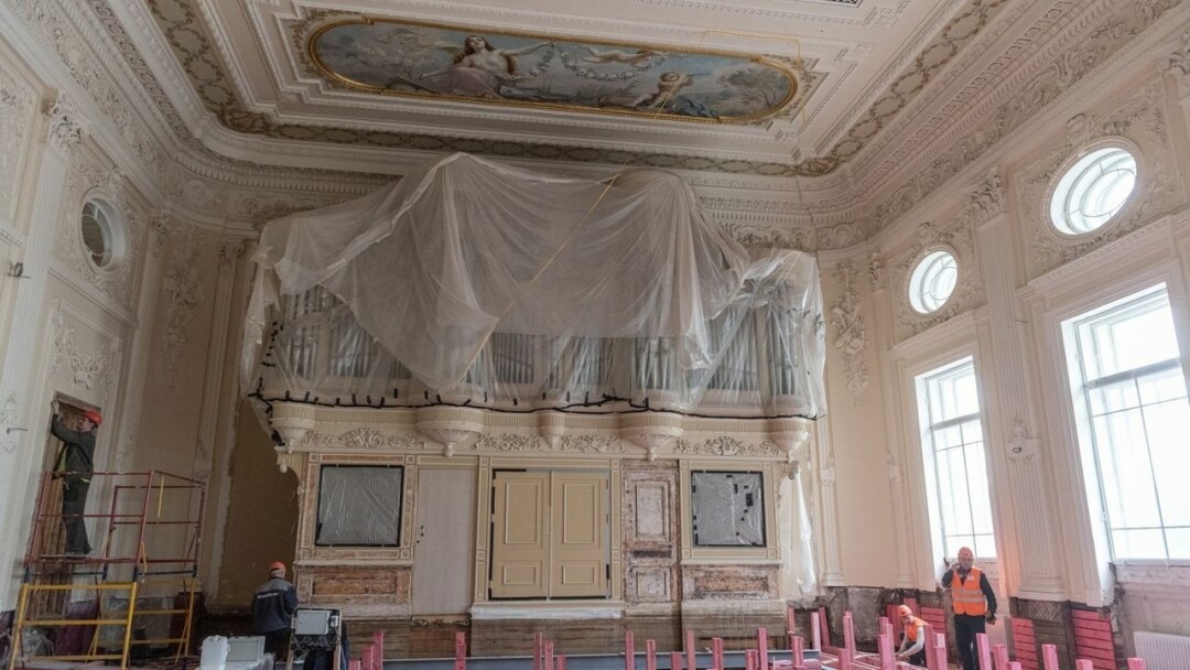 Первый этап реставрации консерватории завершили в 2023 году, а первый концерт в воссозданном зале планируют провести уже в этом году.