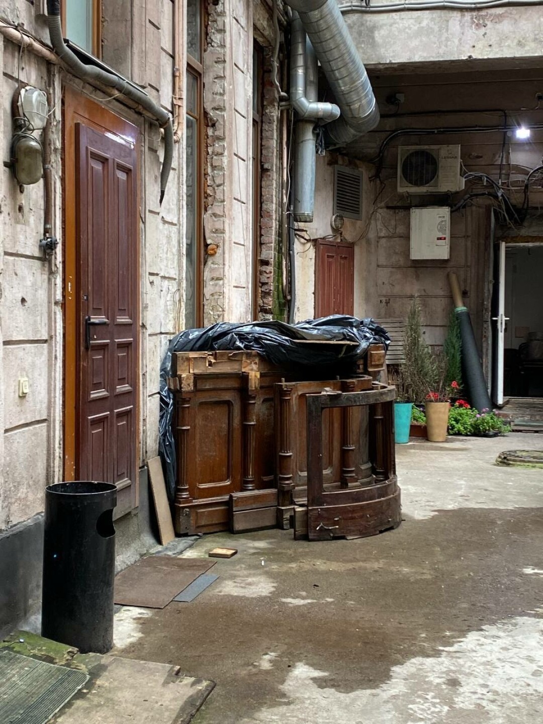 Сотрудники КГИОП выехали на месте после заявления градозащитников, провели проверку и установили, что во дворе, на открытом участке, действительно сложены дубовые ограждения конторских рабочих мест, а сам двор превратился в склад мусора. В ведомстве отметили, что здание и участок находятся в собственности ООО «Коланы 62» и Петербурга.