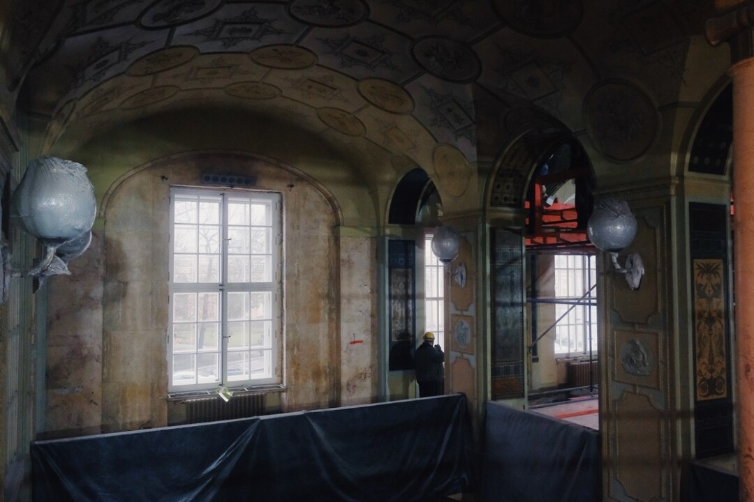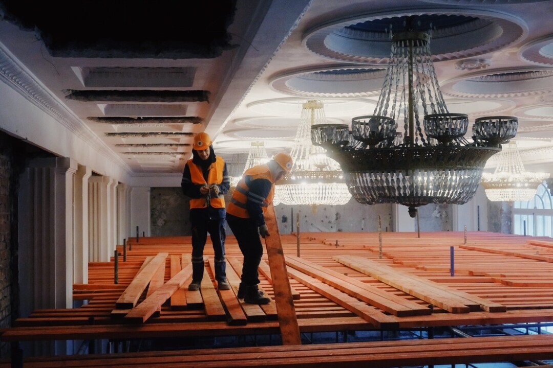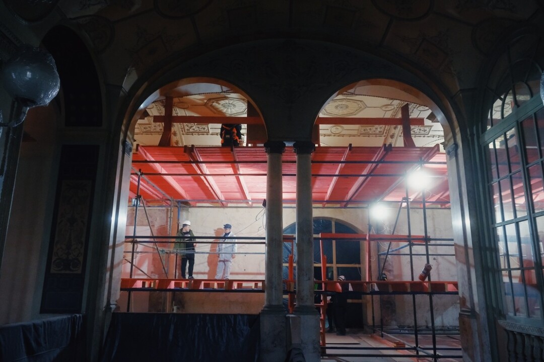 Реставрация исторического здания началась в апреле текущего года — проект предусматривает капитальный ремонт конструкций, обновление инженерного оборудования, восстановление элементов лицевых и дворовых фасадов, а также интерьеров помещений с ценной отделкой. Будут устроены входы с раскрытием исторических дверных проемов, крыльца, навесов, также отреставрируют витражные окна первого этажа, исторические фонари и вывески на входах, аутентичные часы и другие исторические элементы. Все работы проводятся локально и аккуратно — с сохранением исторического материала. Большой акцент в проекте реставрации сделан на звуке — большие залы для концертов смогут трансформироваться: например, в танцевальном почти вся мебель и покрытие полов будут съемными.