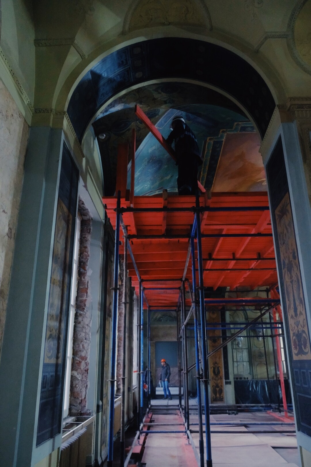 До конца года продлится расчистка исторических интерьеров продолжится — это позволяет специалистам уточнять реставрационные планы, корректировать при необходимости способы усиления конструкций, уточнять способы работы с разными элементами здания. Параллельно строители будут проводить устройство полов, ремонт отделки и части крыши.