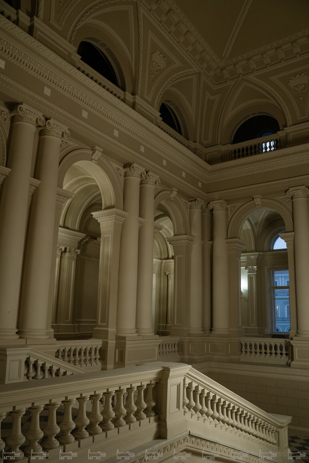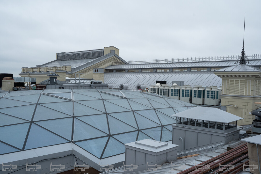 Пережив революции, Великую Отечественную войну, архитектурный памятник пришел в упадок. Первая реставрация после капитального ремонта середины 1960-х началась лишь в 2014 году. За десять лет объект сменил несколько подрядчиков. В 2021-м восстановление здания поручили публично-правовой компании «Единый заказчик в сфере строительства» (в портфолио — ГМИИ им. А. С. Пушкина в Москве!) и АО «Политехстрой-Сварго» (реставрируют и реконструируют московский Политех!). Вернуть зданию облик 1912 года смогли к концу 2024-го. Специалисты усилили фундамент, бережно привели в порядок фасады и выкрасили их в исторический светло-бежевый оттенок. Отреставрировали живопись, лепной декор, метлахскую плитку и сохранили акустическую систему XIX века — специальные еловые фальш стены, которые делают звук чище. Внутренние дворы накрыли стеклянными куполами — их приспособят под зоны отдыха.