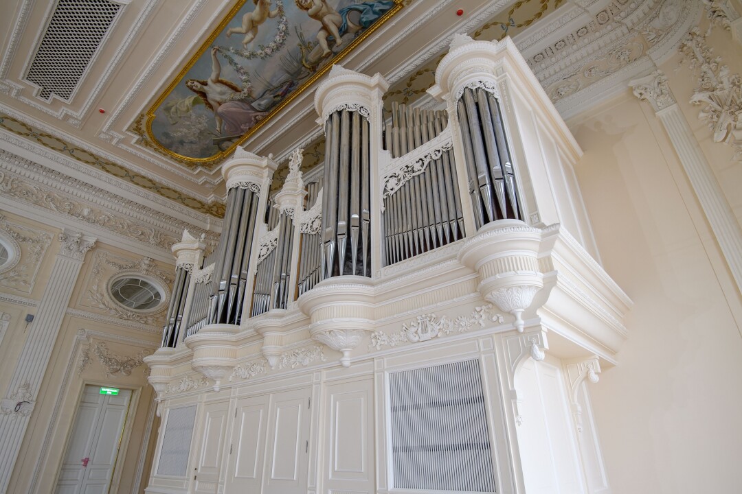 Сенсацией стал Малый зал: стены обшили еловыми досками с отступом от кирпичной кладки, чтобы добиться хорошей акустики. Установили орган немецкой фирмы E. F. Walcker. А художник Андрей Рябушкин исполнил плафон с изображением Аполлона Мусагета, его жены Каллиопы, сына Орфея, муз Полигимнии и Эвтерпы.