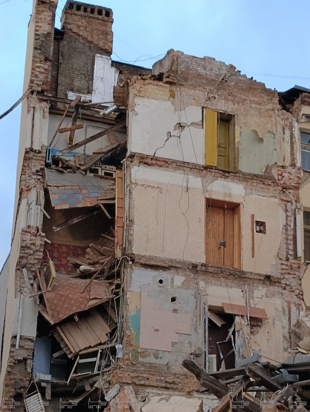 На сегодняшний день из дворовой секции вывезли обрушившиеся обломки конструкции. Во дворе также установили защитные деревянные и металлические ограждения. Одну из лестничных клеток затянули противоаварийной сеткой.