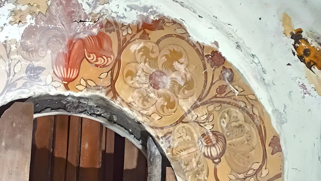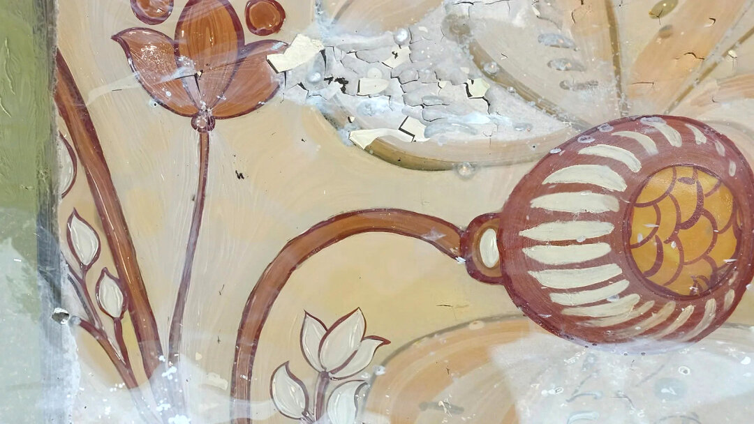 Напомним, роспись нашли в процессе разбора обшивок стен в помещении на пятом этаже Дома Радио. Лабораторные исследования установили, что она относится к началу XX века – периоду постройки здания Благородного собрания.