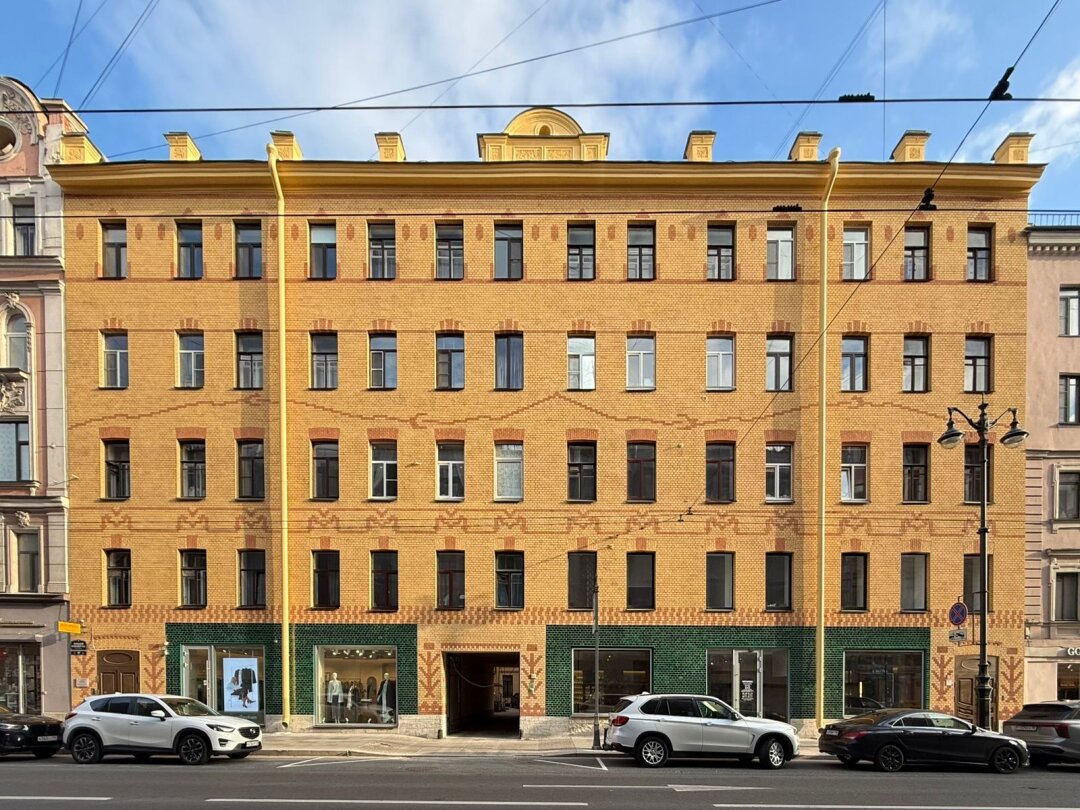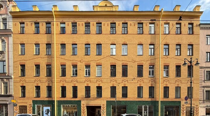 «Сама идея облицовки была основана на историческом фиксационном чертеже из архивных фондов, который свидетельствует, что поверхность фасада была отделана плиткой. Расчистка штукатурки позволила также выявить оттиск тыльной поверхности плитки, ранее размещенной на фасаде. Глазурь, которая часто использовалась в «модерне», подобрана в изумрудном оттенке с переливами, что подчеркивает стилистику и уникальный декор здания. Именно данные архивов и проб позволили разработать это красивое сочетание, которое так преобразило главную улицу Петроградской стороны», — рассказали в КГИОП.