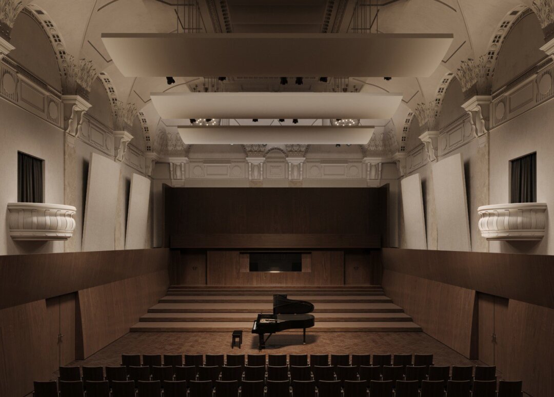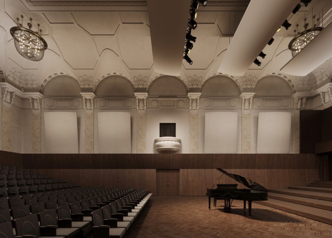 Это здание занимает особое место в истории города. Его построили в начале XX века для Благородного собрания Петербурга. В 1932 году оно перешло Ленинградскому радио, которое было главным источником информации в блокаду. А уже в наши дни этот дом стал творческой резиденцией оркестра и хора musicAeterna под руководством дирижёра Теодора Курентзиса.