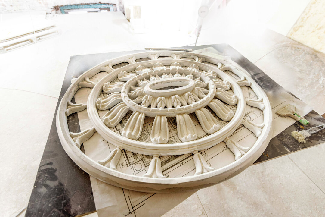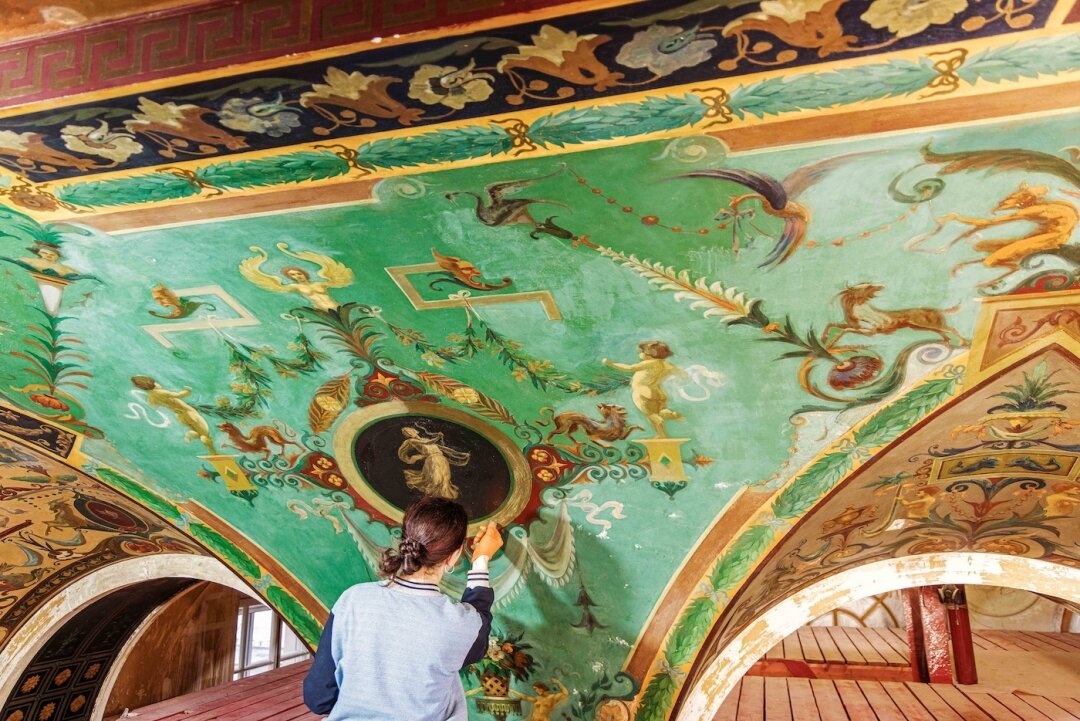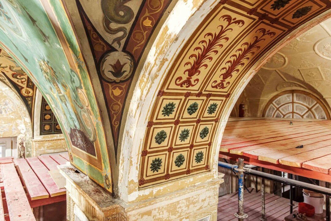 Мы ожидали, что будут непредсказуемые ситуации и разные находки, но не предполагали, что в таких масштабах. Уже были разработаны архитектурный и интерьерный проекты, но в ходе расчисток начали появляться новые детали. Обнаружились порталы с живописью и в тех местах, где их по планам здания не было. Открылись исторические элементы отделки, которые теперь нужно сохранить и вписать в разработанный ранее план по интерьерным решениям. Были выявлены места, где слишком сложно провести запланированные инженерные коммуникации, поэтому пришлось многое переделывать в процессе. Это и есть самое сложное: из-за особенностей здания несколько раз приходилось, и еще приходится, вносить изменения в первоначальный инженерный проект. Это трудоемкая работа: инженеры с архитекторами буквально до миллиметров все просчитывают, и маленькое, казалось бы, открытие влечет изменение целых разделов проектной документации.