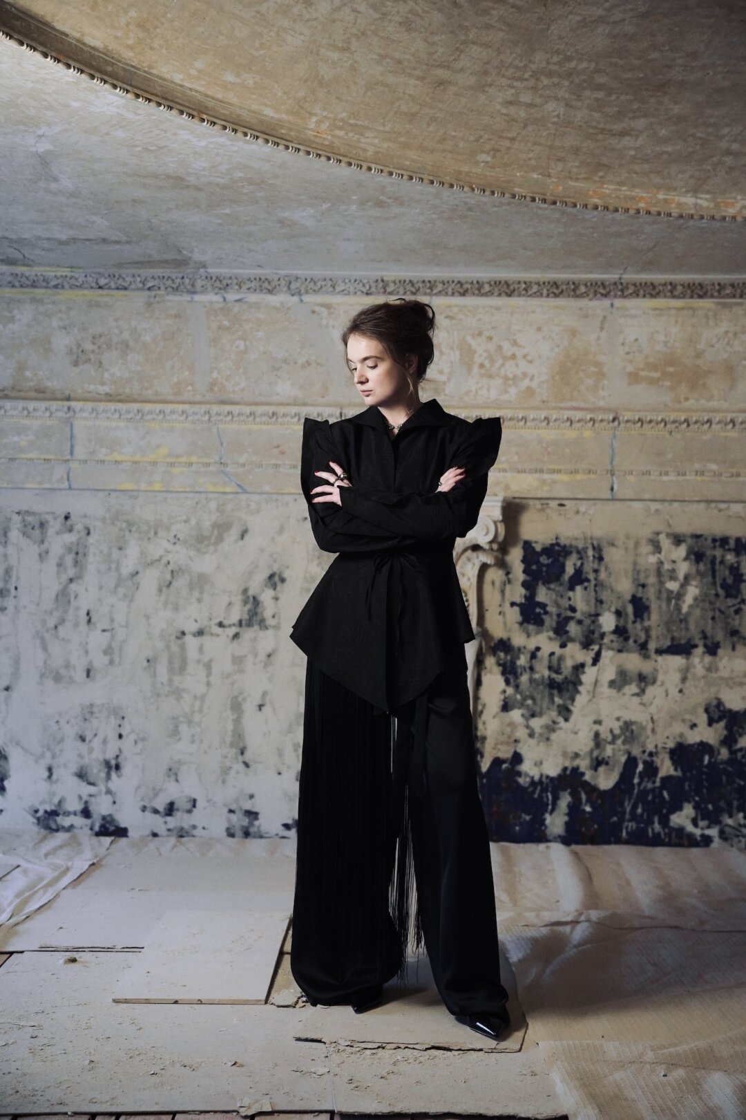 Второй образ. Блуза Capparel.21est, брюки Mollis, пояс Sasha Ostrov, туфли Grate.