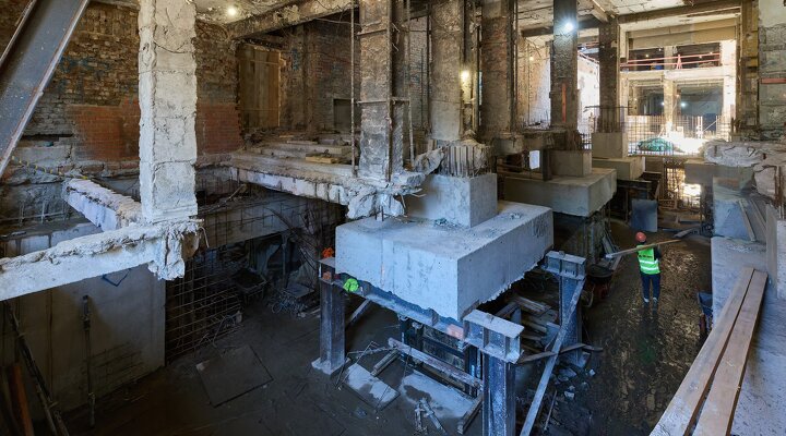 В первую очередь это реконструкция главной сцены Музыкального театра имени Шаляпина, бывшего театра «Мюзик-Холл», в Александровском парке. В данным момент здание проходит технически сложный этап — частичную пересадку на новый фундамент с заглублением до семи метров. Это уникальная работа: подобных проектов в городе было мало. У нашей компании есть похожий опыт — в Александровском дворце, но там заглубление составляло до двух метров. В здании музтеатра этот этап планируем завершить до конца 2026 года. Параллельно на объекте идет реставрация фасада.