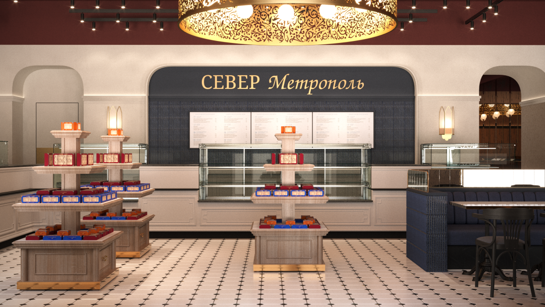 Как ранее пообещали в соцсетях «Север-Метрополь», «Восточные сладости» возвращаются в город с исторической обстановкой. Атмосферу советской кондитерской передадут декоративные арки в оконных проемах, стеклянные бра, стены и мебель песочных оттенков, восточные плитка и мозаика, а также состаренные зеркала.