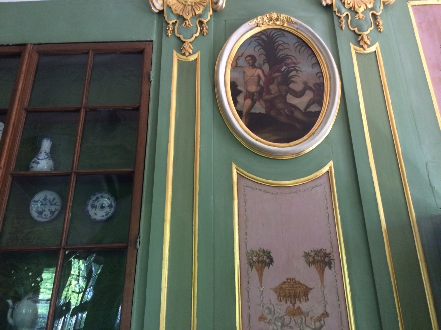 Здесь сохранилась роспись начала XVIII века маслом по дереву. Это единая конструкция, которую трогать было очень опасно. Реставраторы сделали укрепление и зачистку. Комната уникальна еще и своей историей, ее называют «Кабинетом редкостей». Здесь было положено начало Кунсткамере.