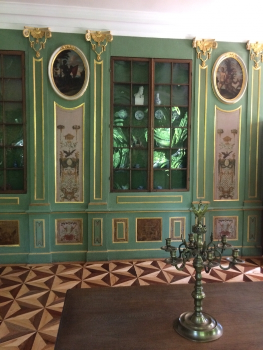 В спальне Екатерины II находится коллекция китайского шелка. Кровать также до сих пор на реставрации. В верхнем вестибюле есть зеркало, по легенде сам Петр I приложил руку к его созданию: по дереву вырезаны личные инициалы и подпись.