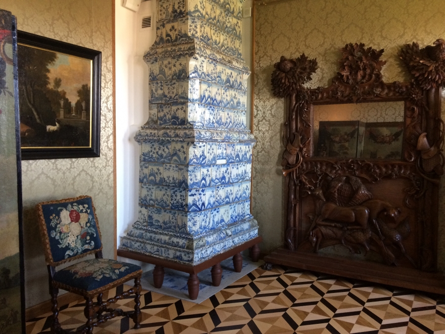 Все печи во дворце настоящие, установлены на деревянные ножки, внутри которых, прочные металлические стержни. Также удалось сохранить подлинные сосновые шкафы – они служили гардеробной. Конструкция сцеплена со стеной крюком: похожая система использовалась на кораблях.