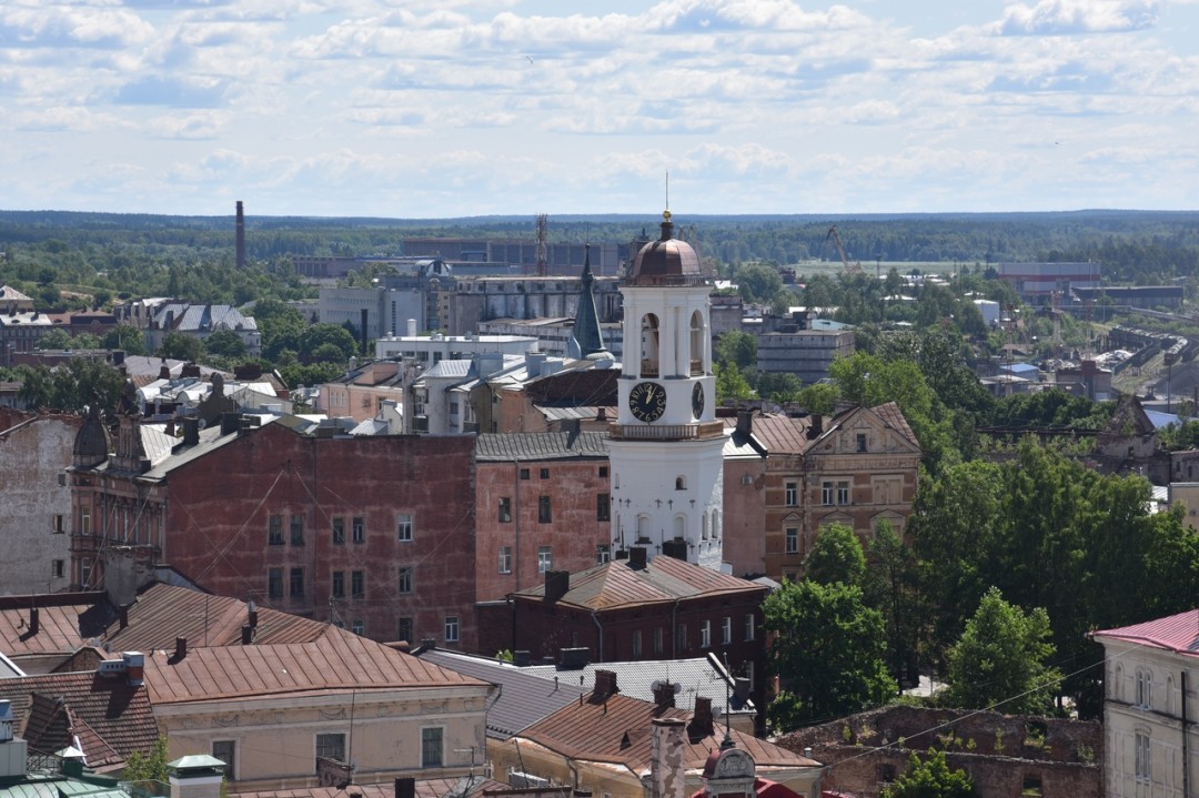 Башня служила колокольней и стояла на самом возвышенном месте, чтобы лучше распространялся звук. Здание увеличивалось по мере роста города: четверик – средневековая часть, восьмерик – новое время, верхняя барочная часть с колоннами – XVIII век. Город, как и замок, многократно горел, после одного из самых масштабных пожаров Екатерина II подарила Выборгу набатный колокол весом почти в тонну, который был установлен и до сих пор находится здесь. Часовой механизм 1848 года, не первый для этой башни, остановился несколько лет назад. В 2017 году сюда забрался местный часовщик-самоучка Иван Першин, учащийся в 11 классе, и починил его, сейчас молодой человек официально работает смотрителем башни. Реставрировали старинный механизм мастера из Эрмитажа.